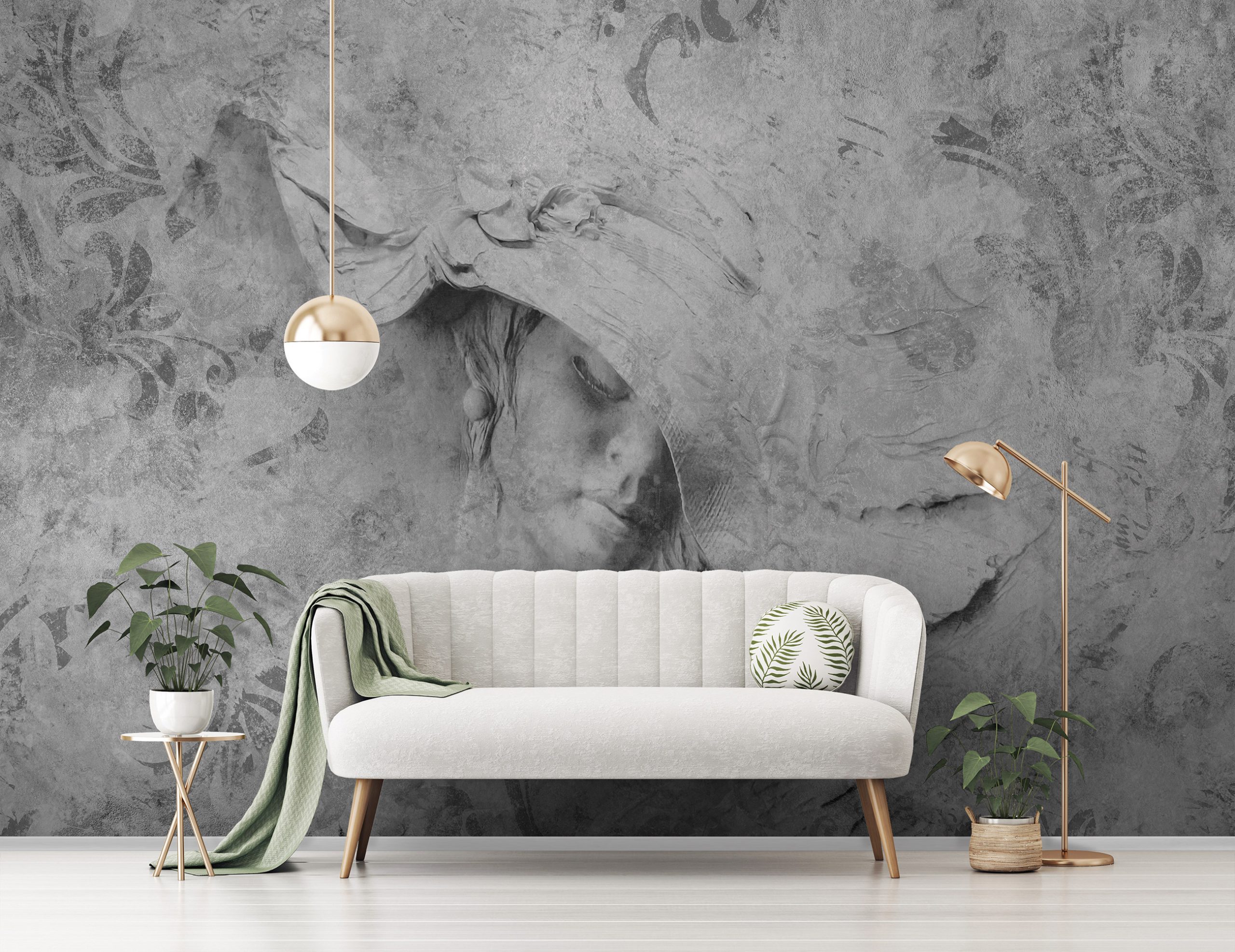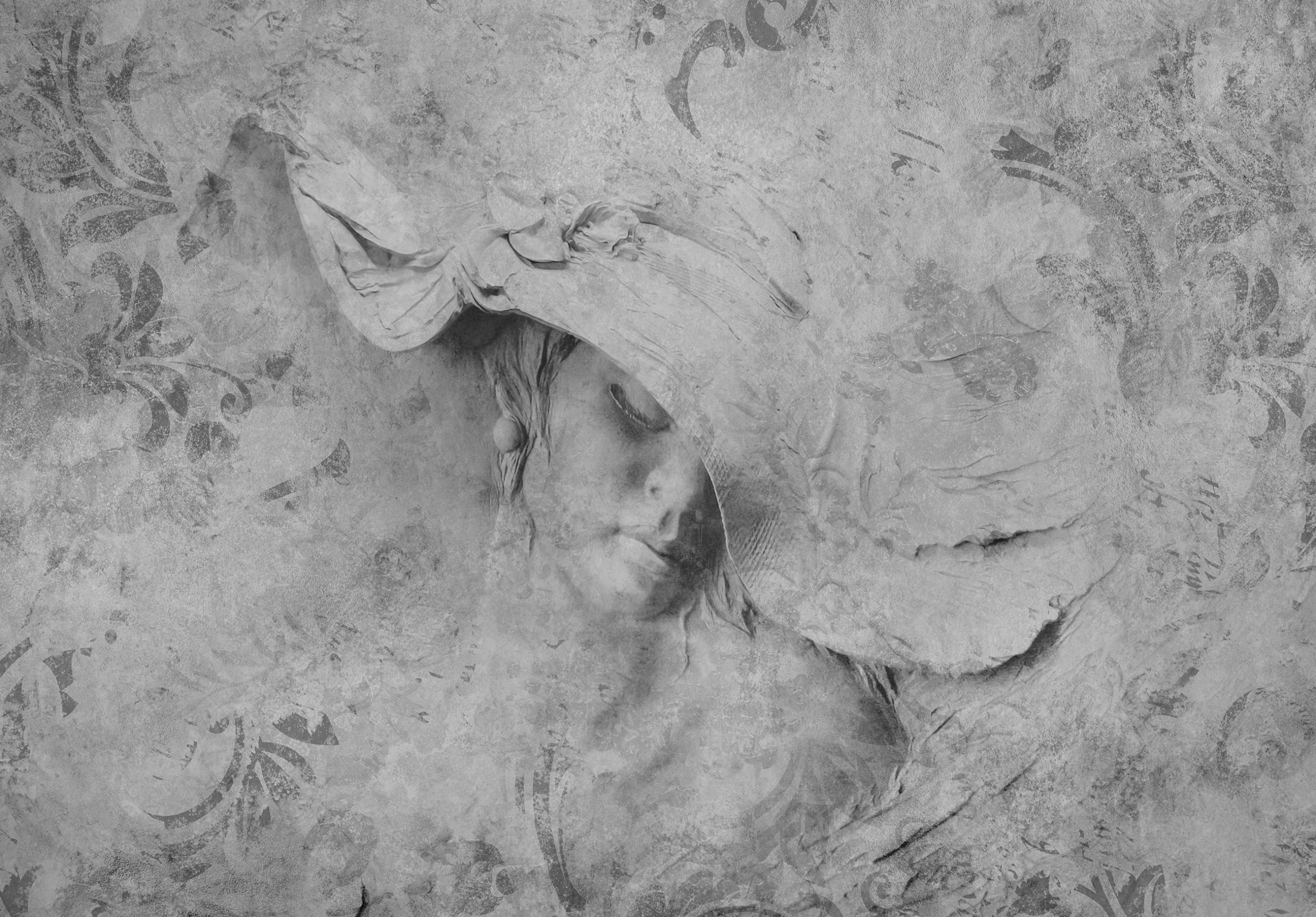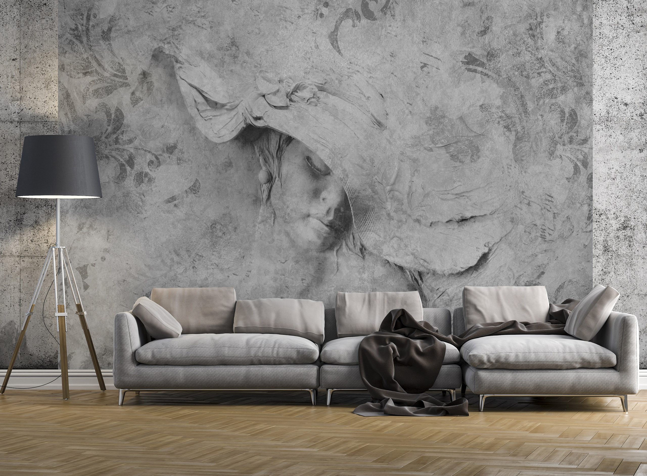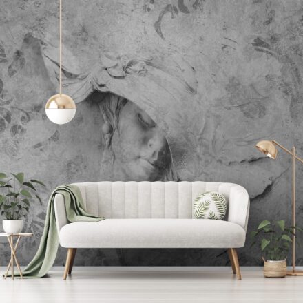 Izgalmasa dekorálja a falat a fotótapéta, melynek 3d hatása van. A betonfalat imitáló képből mintha egy kalapos nő képe emelkedne ki. Különleges atmoszférát teremt, mely elegáns enteriőrökben csodálatosan mutat.