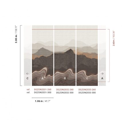 ✔ 318 cm széles x 260 cm magas (3 db 106 cm-es csíkból épül fel)