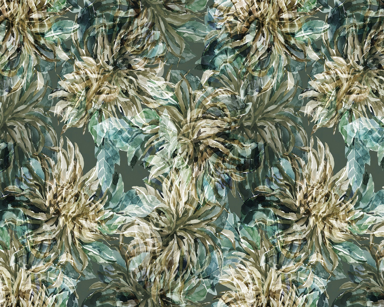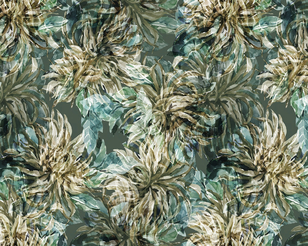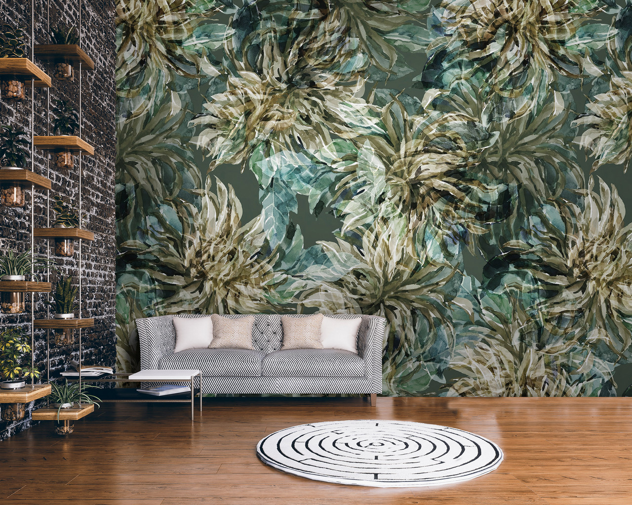 Absztrakt mintájával, elmosódott színátmeneteivel sejtelmes minta jön létre, mely ugyanakkor nagy méretének köszönhetően rendkívül intenzív, látványos fali dekoráció.