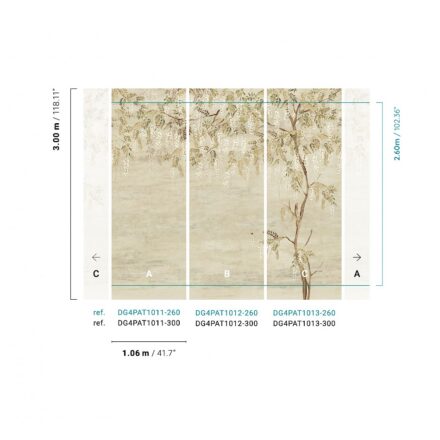 A tapéta sorolható, így több panel is egymás mellé helyezhető mintaillesztéssel.