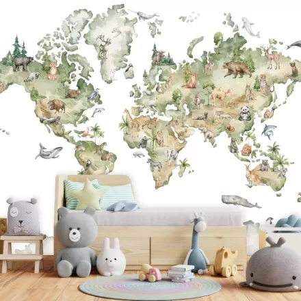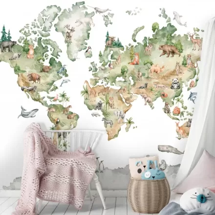 Állatos térkép gyerek poszter tapéta, melynek klasszikus stílusa jól illik minden enteriőrbe.