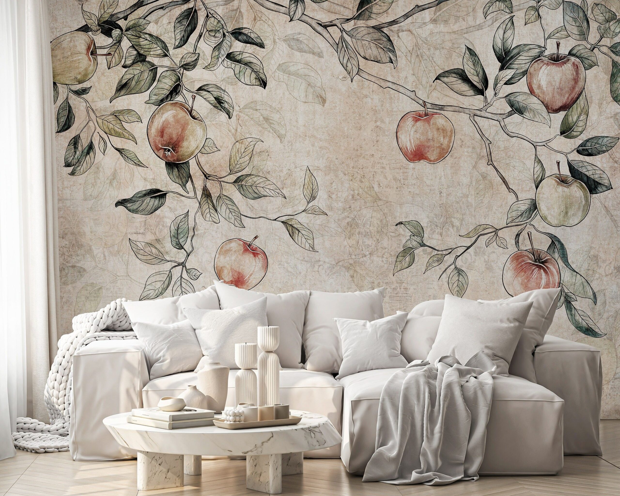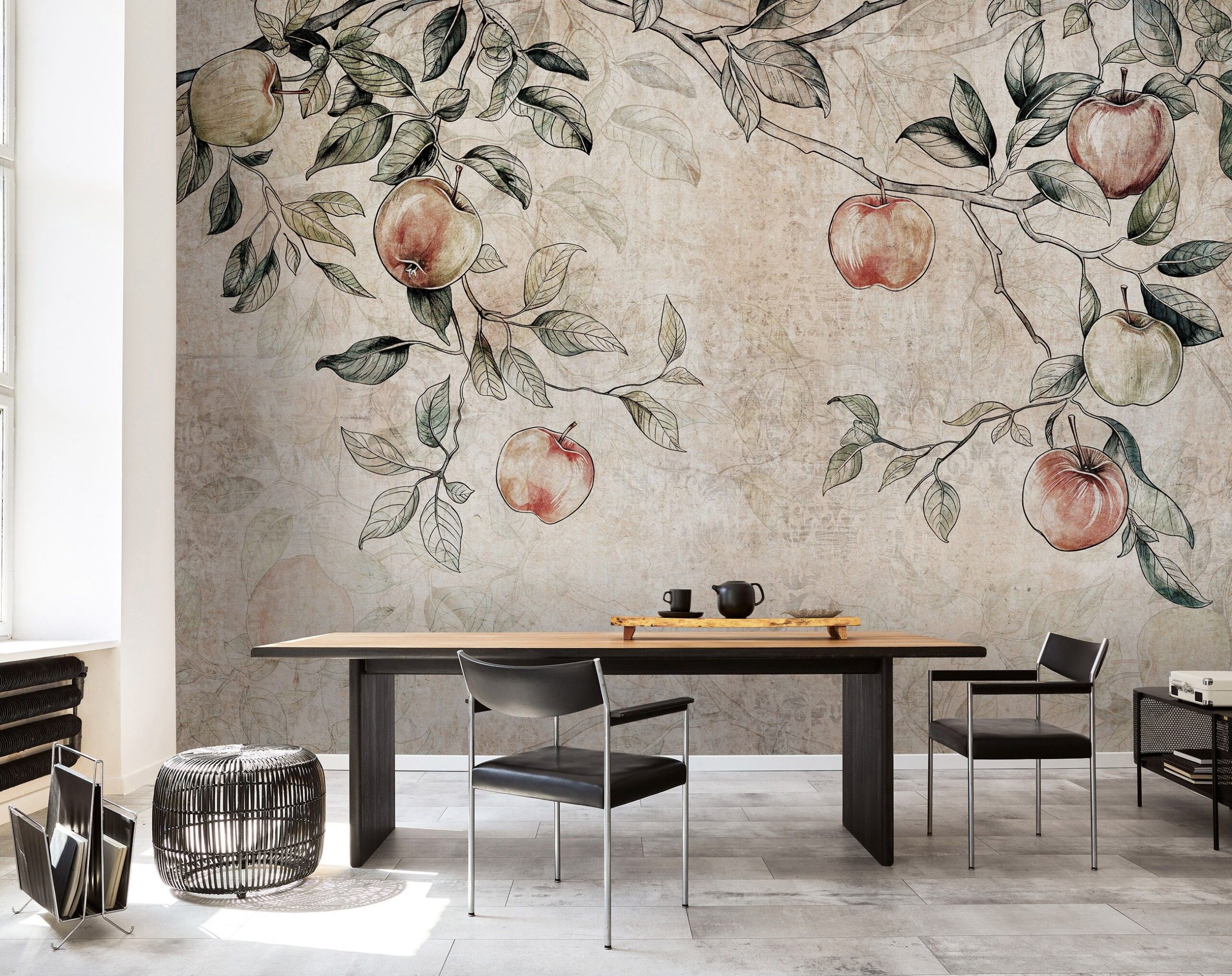 Almafát ábrázoló fotótapéta, melynek könnyed grafikai rajza könnyed, letisztult dekorációt teremt a falon. A természetközeli érzést kölcsönző fotótapéta igen kedvelt a skandináv stílusban berendezett otthonokban.