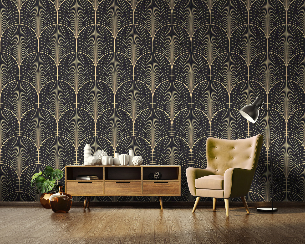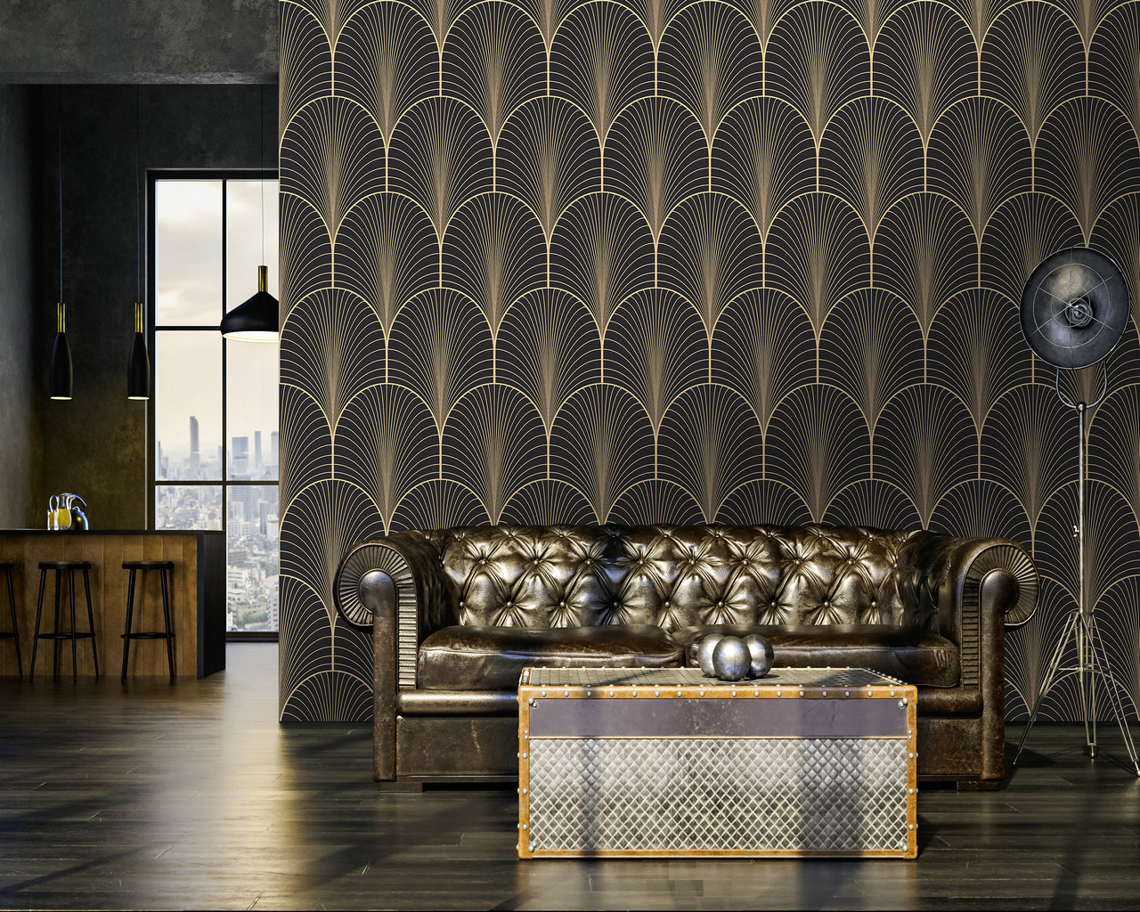 Exkluzív artdeco mintás fotótapéta, melynek eleganciája átjárja az enteriőrt.