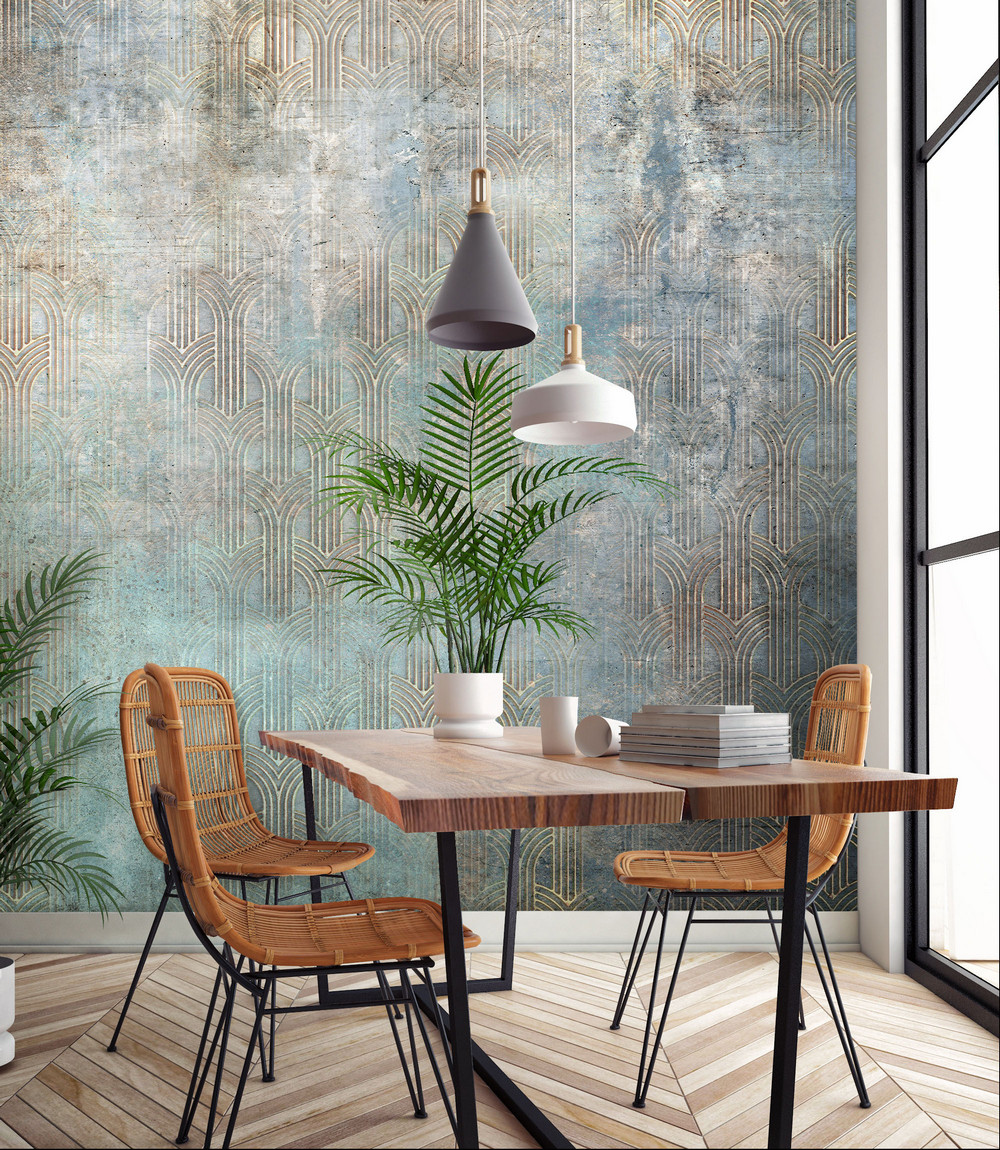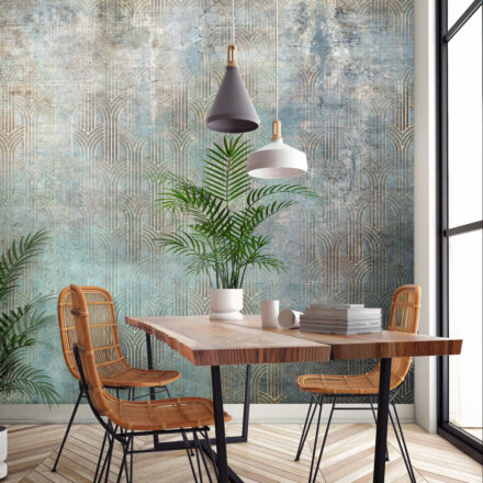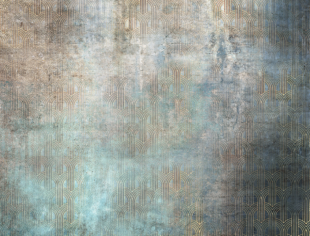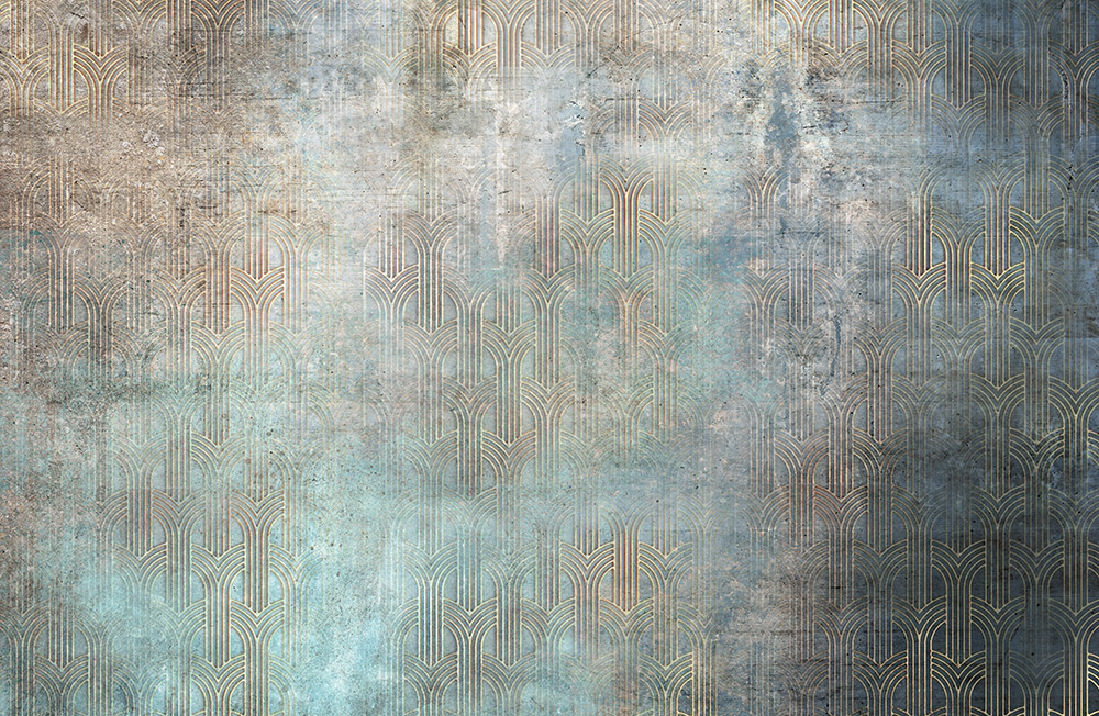 Artdeco mintás fotótapéta, melyet a betonfalat imitáló alapmintázat tesz különlegessé és egyedivé.
