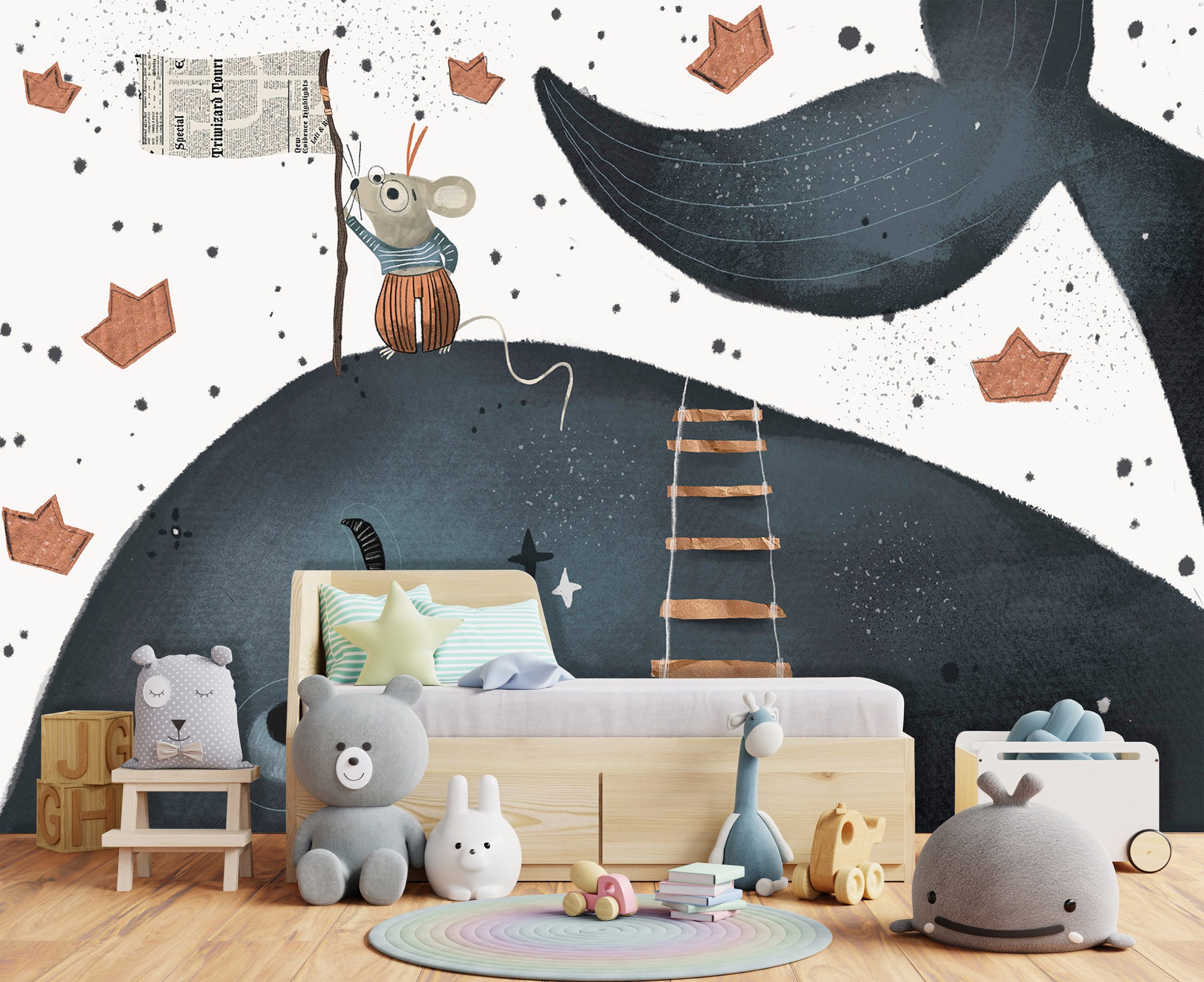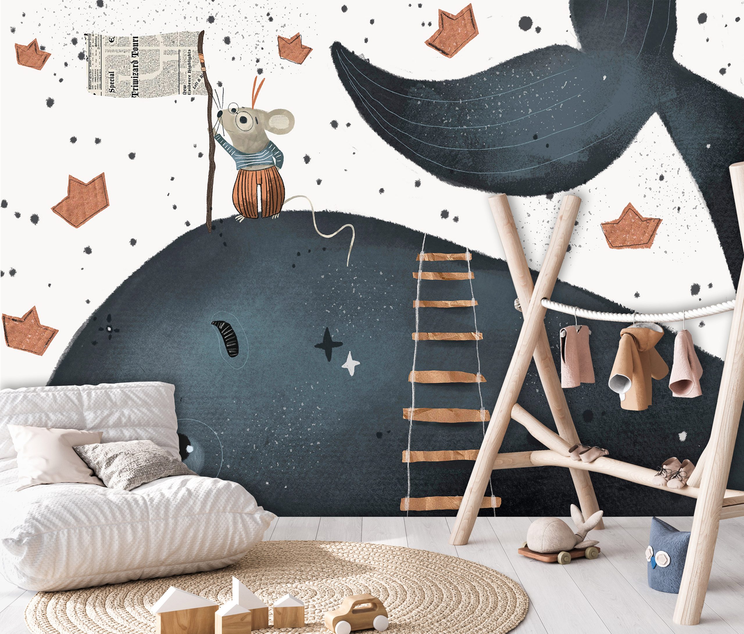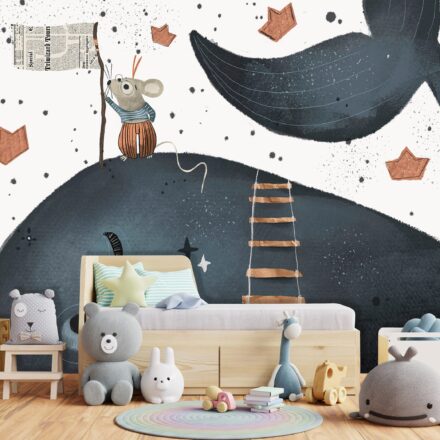 Mesés kalandokat ígér a fotótapéta, melyen a vitéz kisegér bálna háton lovagol.