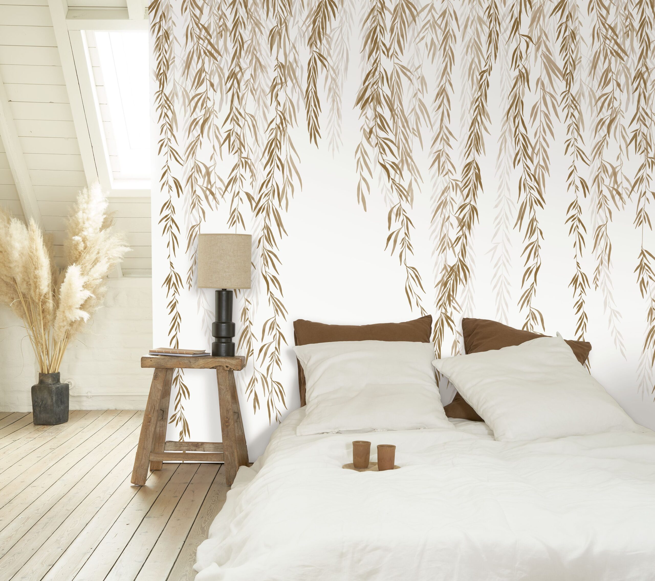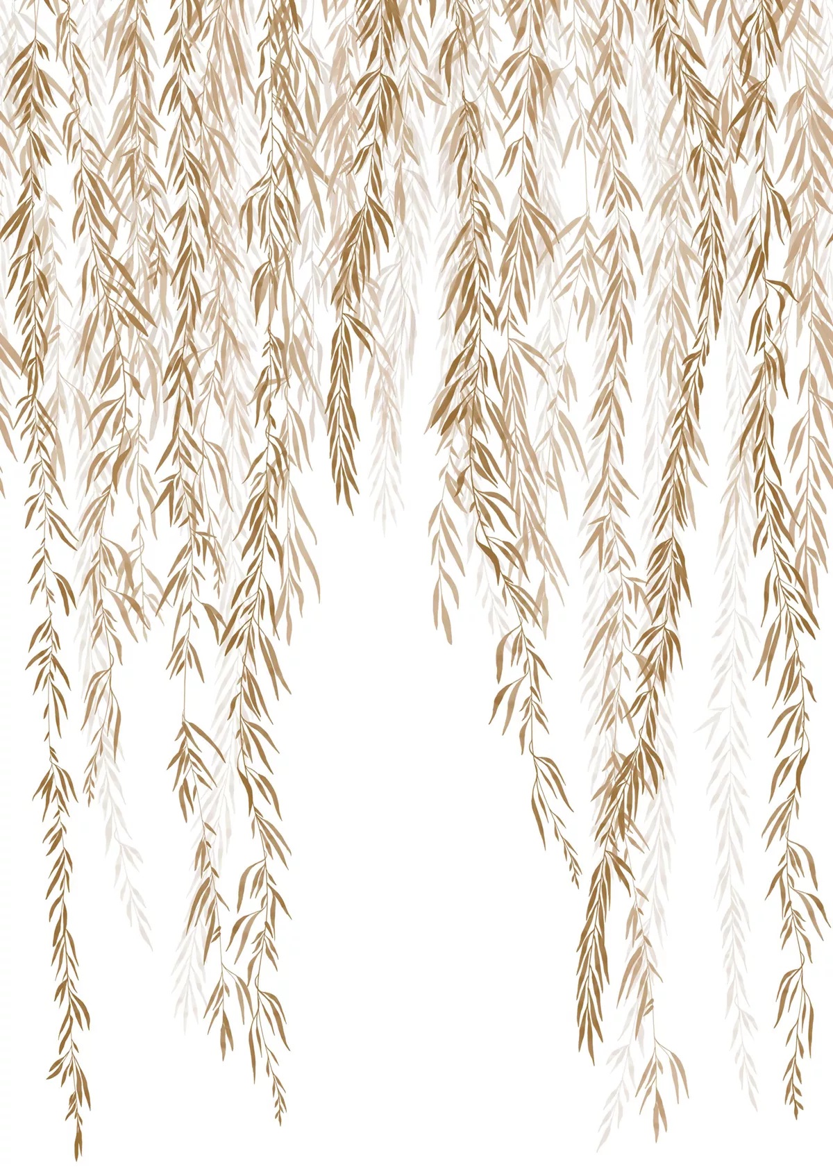 Barna fűzfalevél mintás fotótapéta, mely harmonikus atmoszférát teremt. Kecses ágai felidézik a fűzfák oltalmazó védelmét és megnyugtató látványát, trendi mintája tökéletesen mutat nappaliban és hálószobában egyaránt.