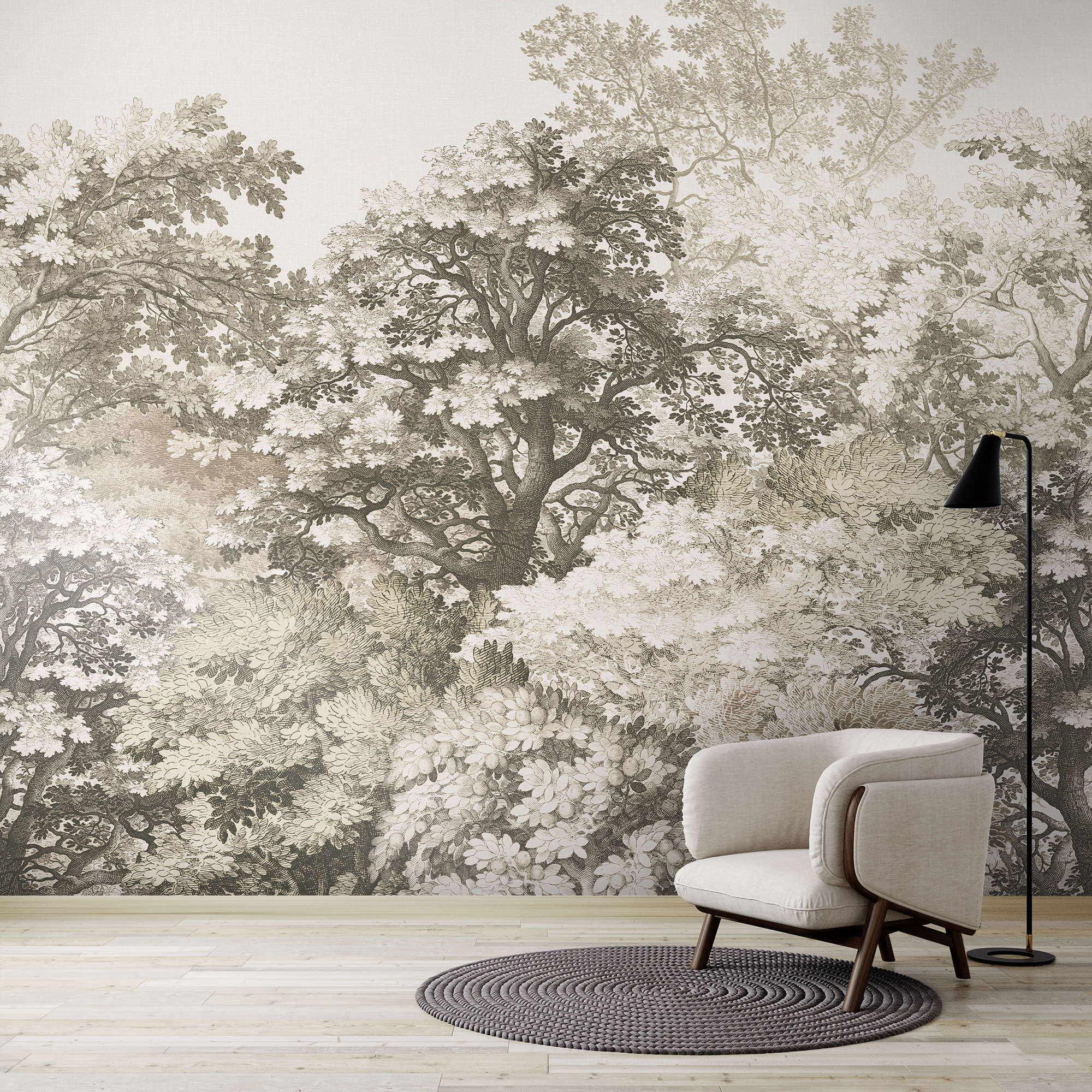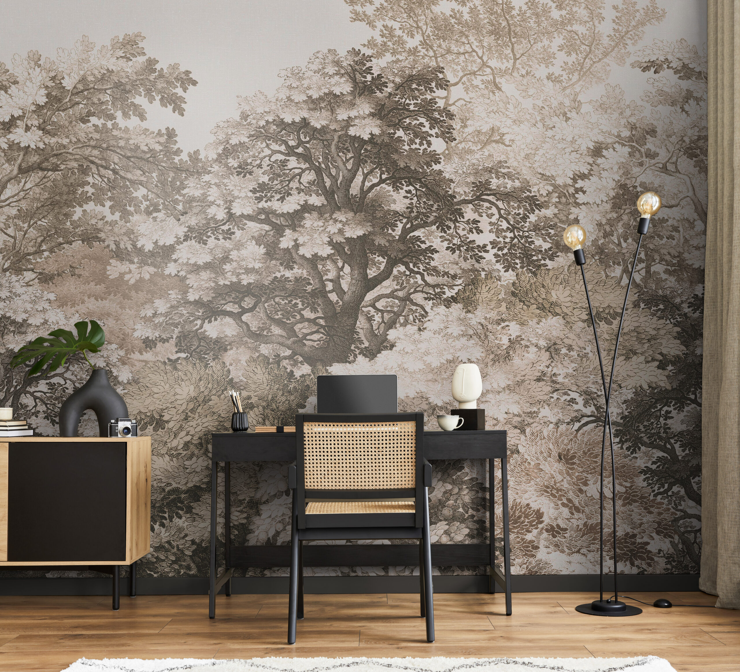 Barnás árnyalatú fa mintás fotótapéta, melynek harmóniája a természet szépségét hozza el otthonodba.