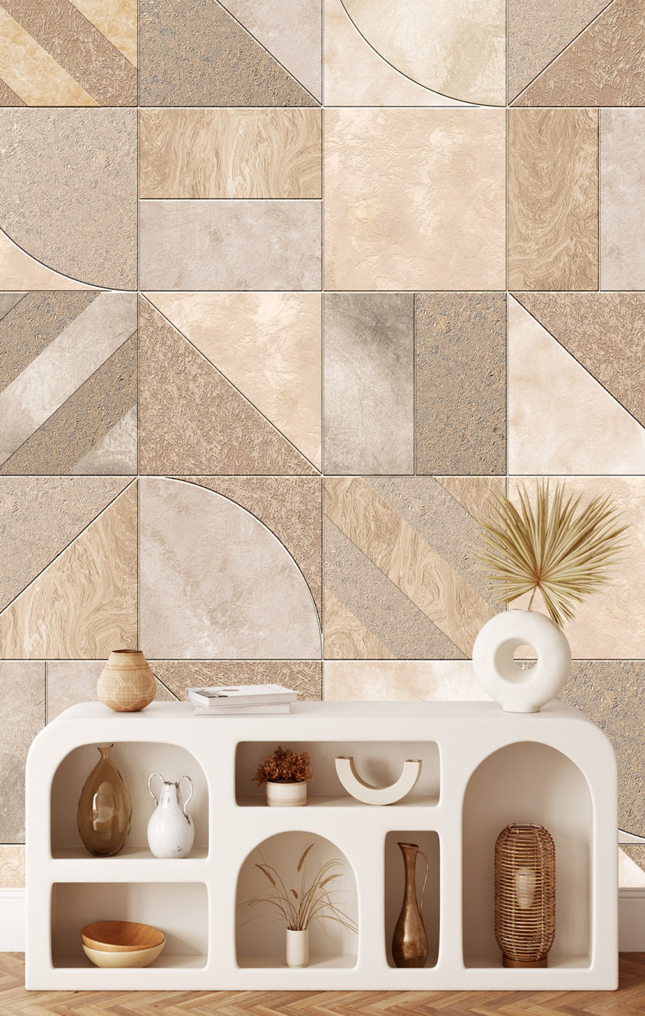 Bézs design fotótapéta felületi imitációval (beton, kő, fém). Izgalmas összhatás, mely a modern loft lakberendezési stílust kedvelőknek ajánlunk.