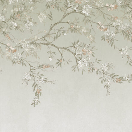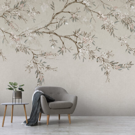 Bézs fotótapéta virágos faág mintával, mely a tavasz szépségét és frissességét hozza el otthonodba. Gyönyörű dekoráció nappaliba és hálószobába.