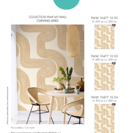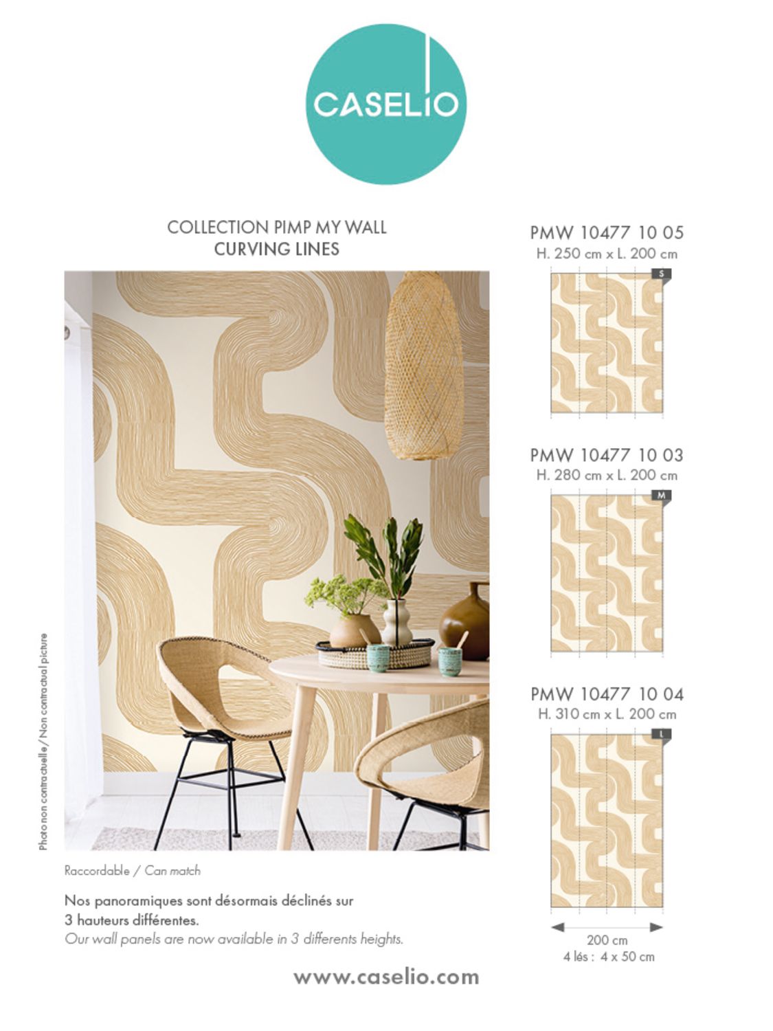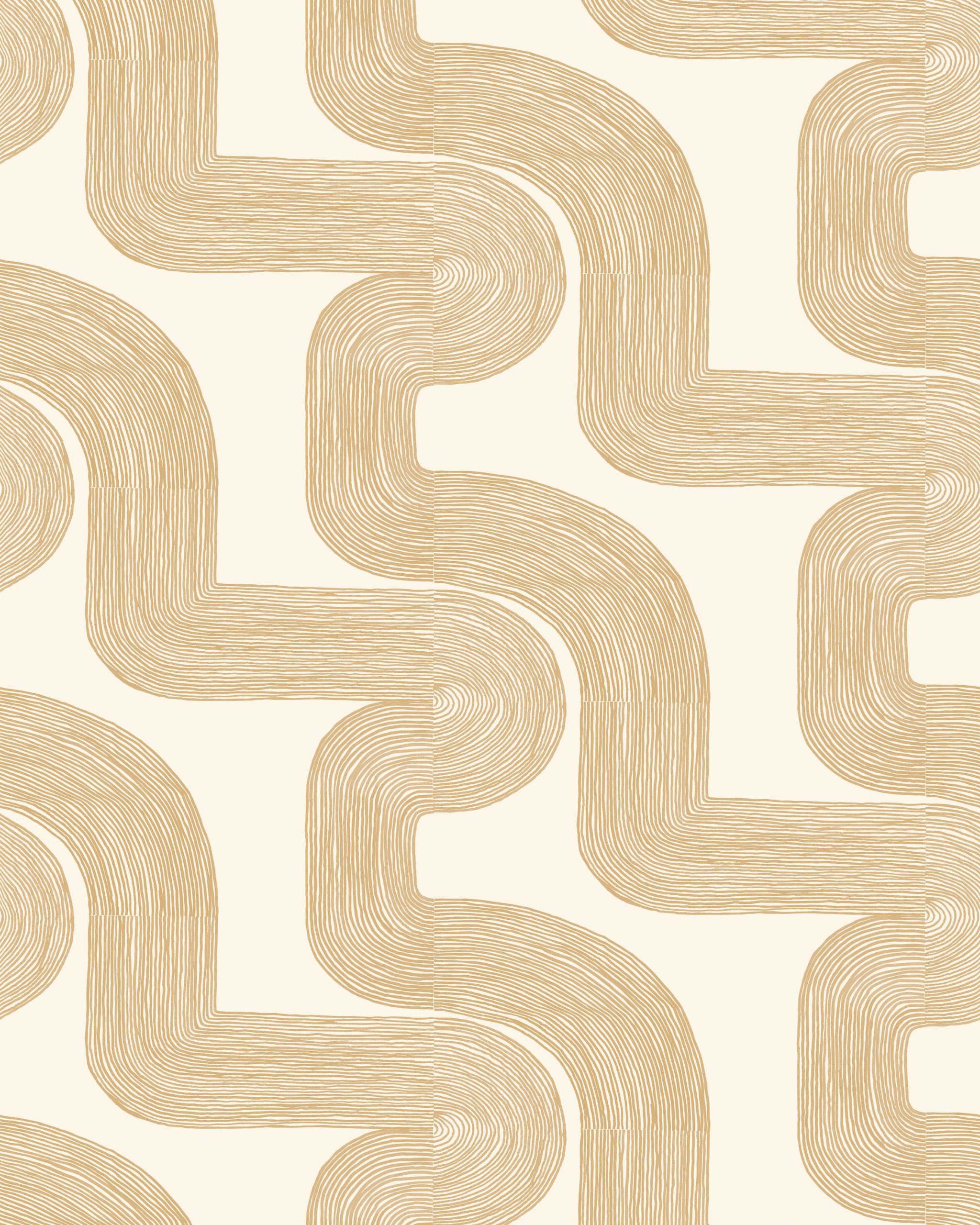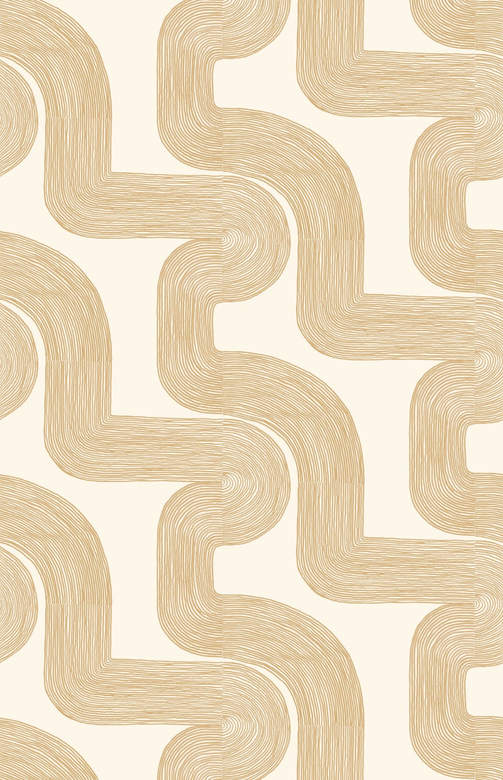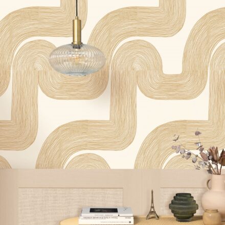 Bézs hullámvonalas vlies fotótapéta, melynek modern geometrikus mintája könnyed dekorációt teremt a minimalista stílusban berendezett otthonokban.