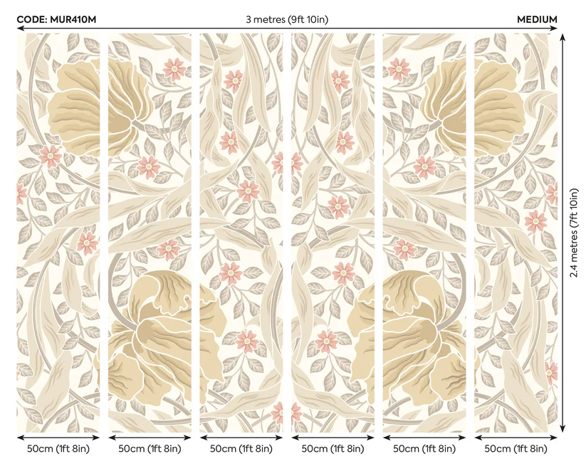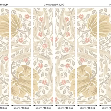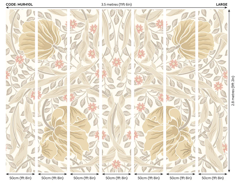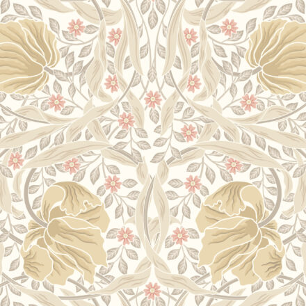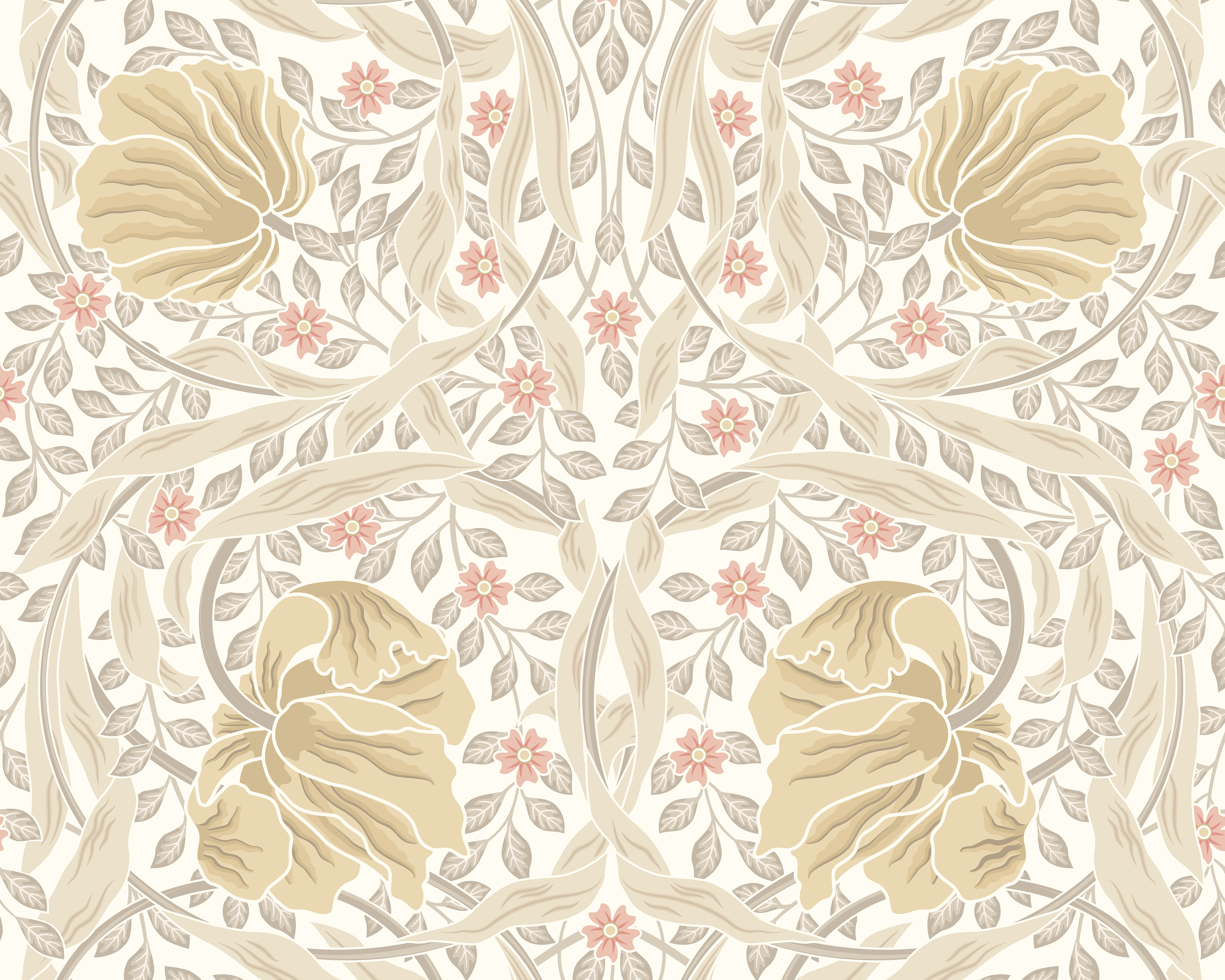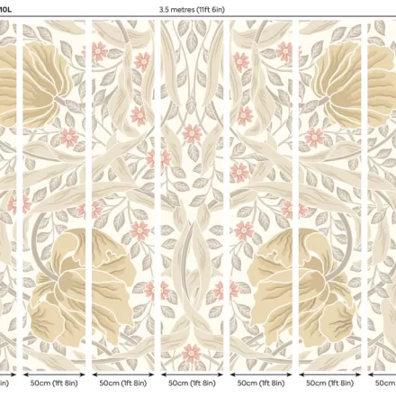 Bézs nagy virágos fotótapéta szecessziós stílusban, melynek motívumát William Morris híres Pimpernel mintája inspirálta.
