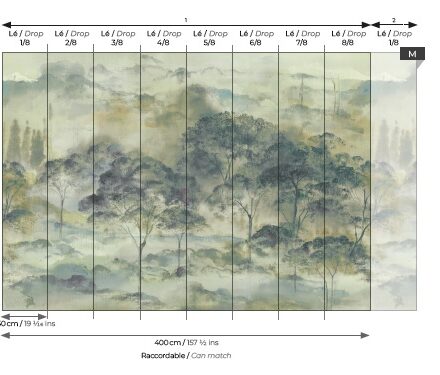 Sorolható tapéta, azaz több panel mintaillesztéssel egymás mellé helyezhető.