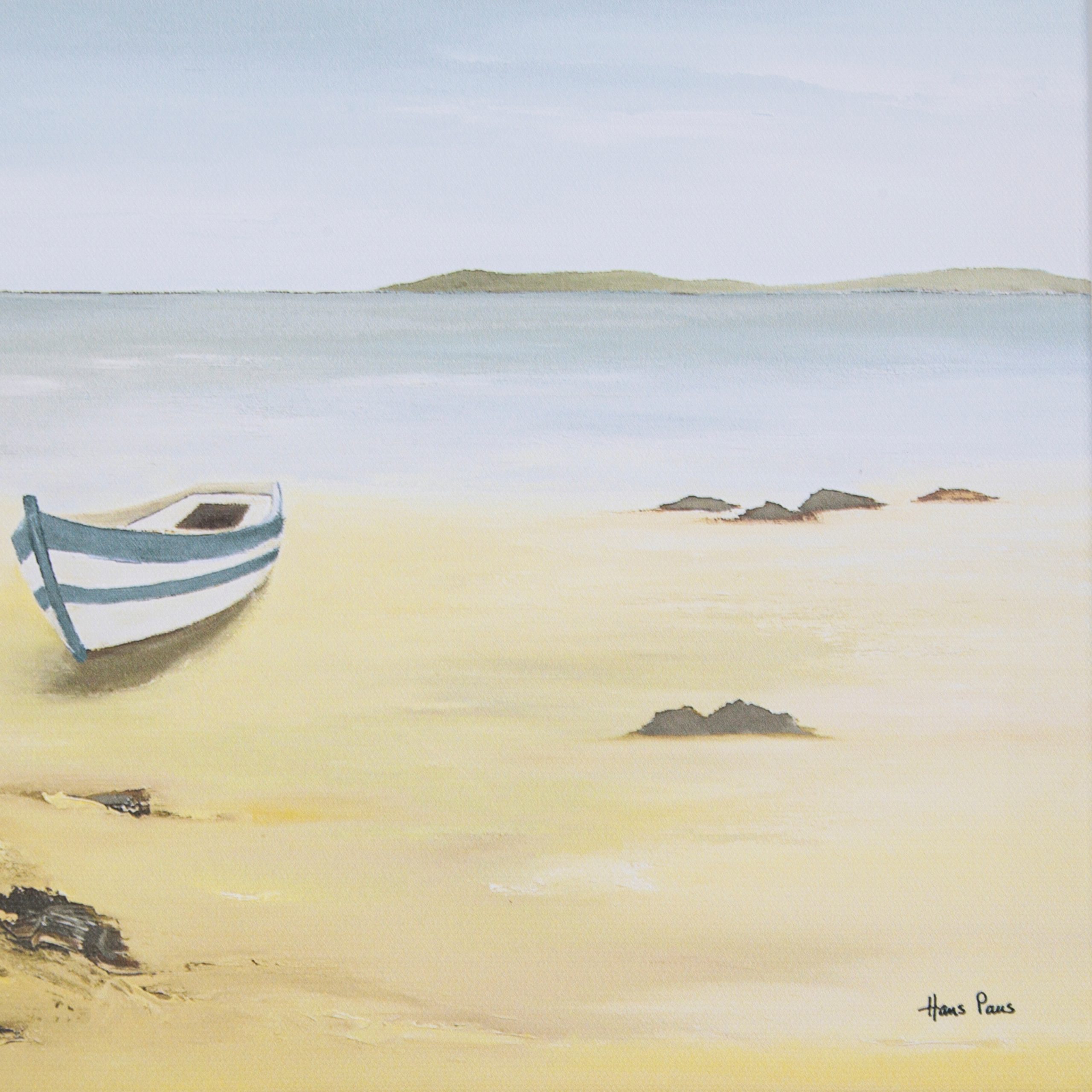 Laura Ashley vászonképe, mely az angol designhoz illő módon békés tengerparti tájképet ábrázol.