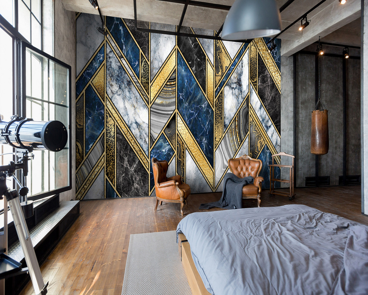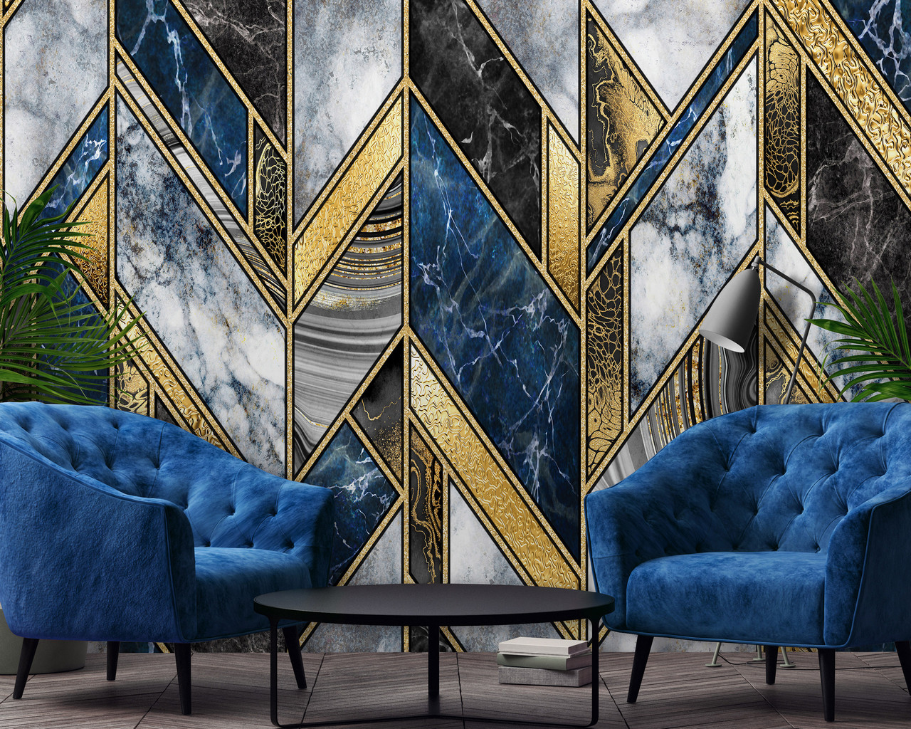 Exkluzív geometriai mintás fotótapéta, melynek eleganciája átjárja az enteriőrt.