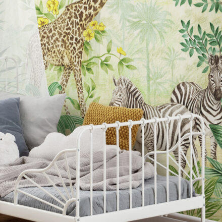 Te is kalandvágyó vagy? Remek háttérként szolgál gyerekszobákban az állatos dzsungel fotótapéta szafariknak, felhőtlen közös játéknak.