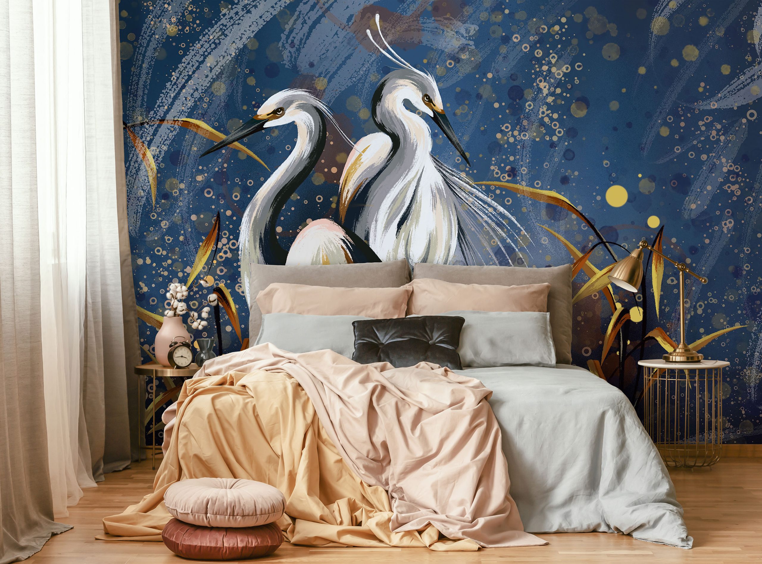 Fenséges egzotikus madarak dekorálják a fotótapétát, melyen a büszke madarak királyi látványt nyújtanak. Egzotikus, orientális stílusú otthonokba egyaránt ajánljuk.