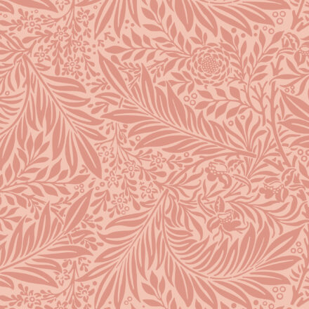 Elegáns botanikai mintás fotótapéta pirosas árnyalatban, melyen a kecsesen ívelő virágok és levelek harmonikus enteriőrt teremtenek.