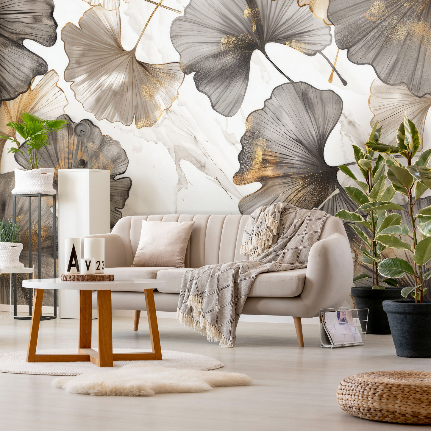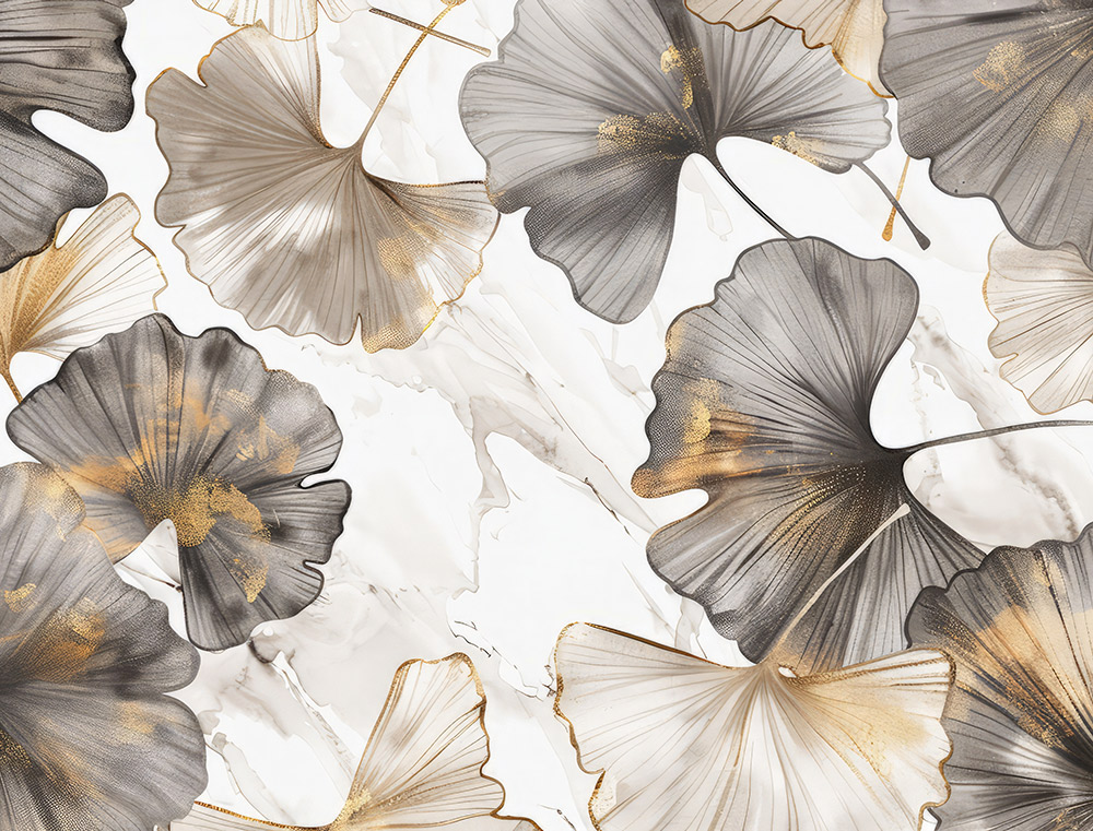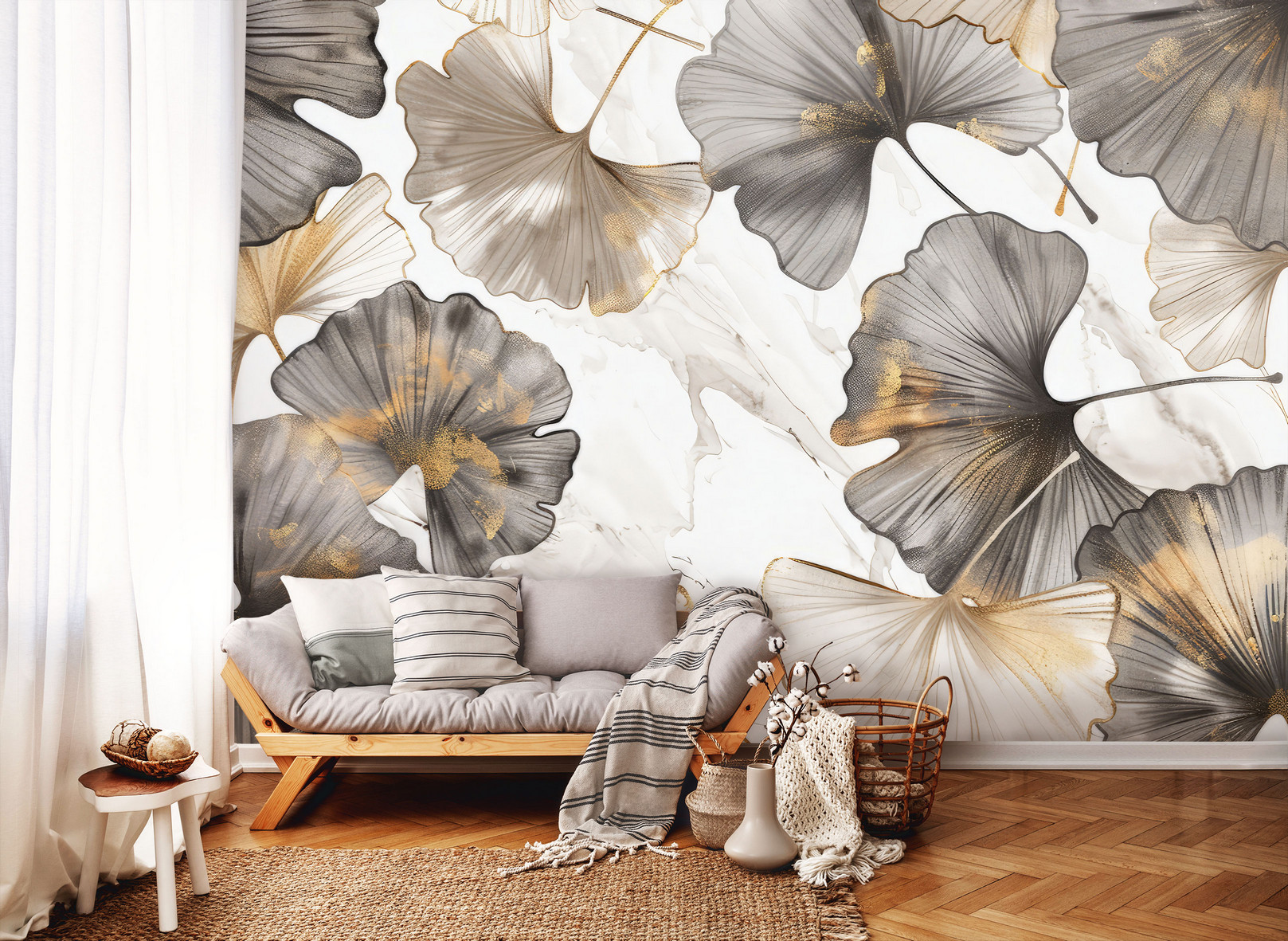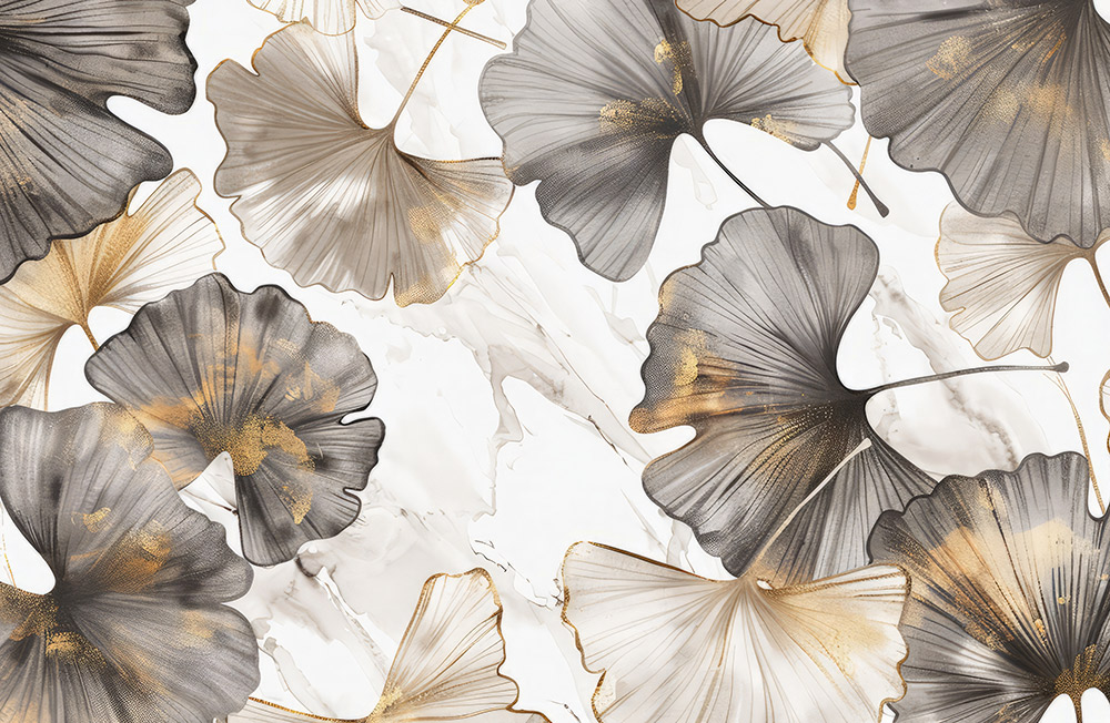 Elegáns ginkgo biloba mintás fotótapéta, melynek könnyed levélmintái harmonikus látványt teremtenek.