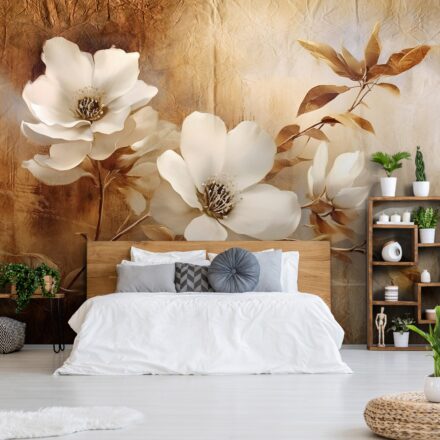 Tavaszi hangulat és nőies kifinomultság tükröződik az enteriőrben, melyet ez különleges megformált virágos fotótapéta dekorál. Köszönhetően a színek játékának a tapétának 3d hatása van, a hatalmas szirmok szinte már kiemelkednek a tapéta felszínéből.