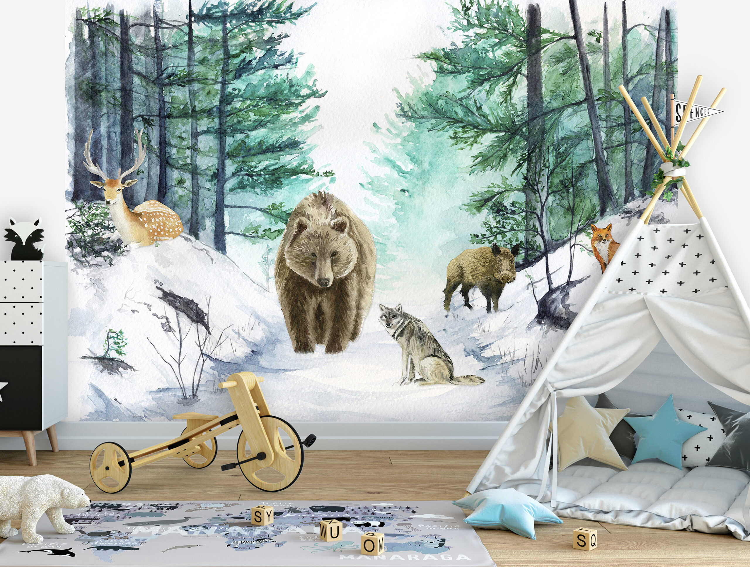 Téli napokon is melegséggel töltenek el bennünket az erdők kedves lakói. Gyerekszobák megúnhatatlan fotótapétája, melyen kedvenc állataink jelennek meg.