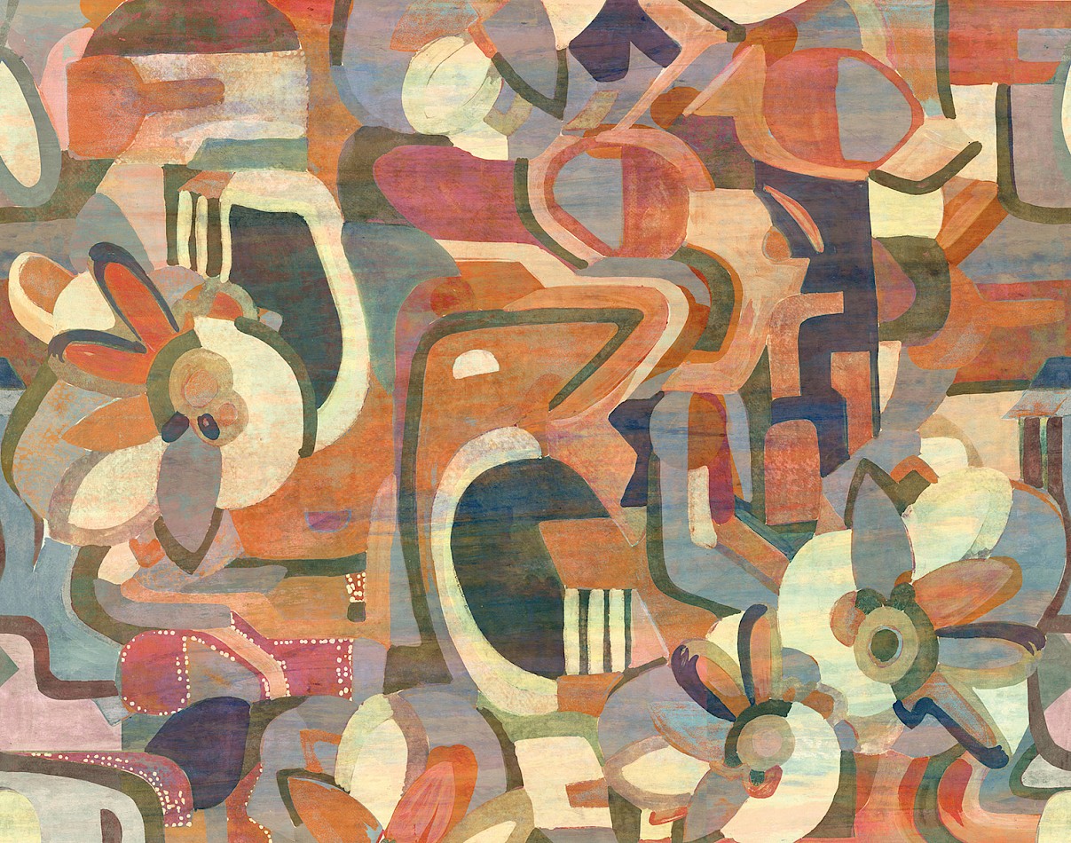 Modern absztrakt mintás fotótapéta, melynek mintája és színei feldobják az enteriőrt. A tapéta szövetes felülete exkluzív látványt nyújt.