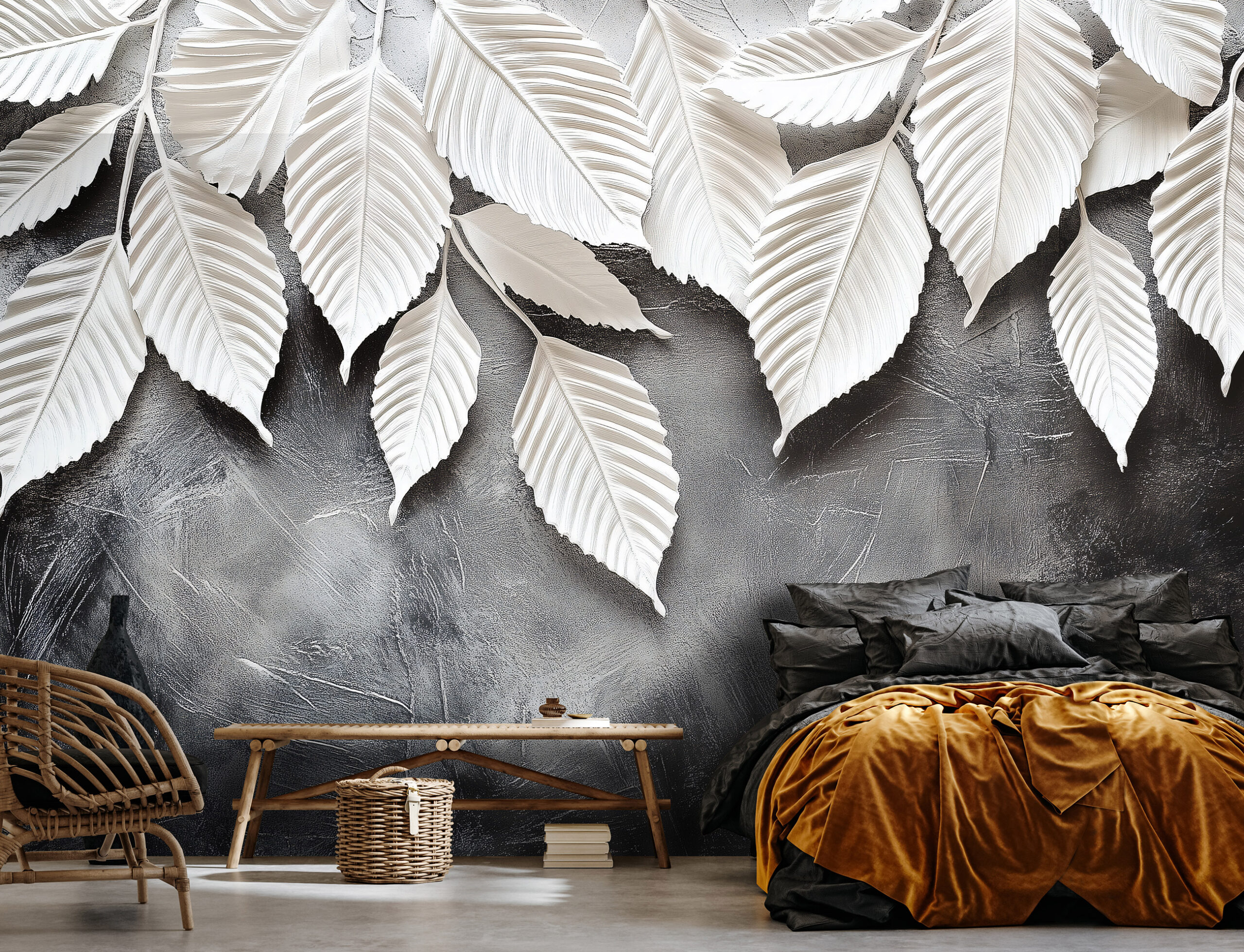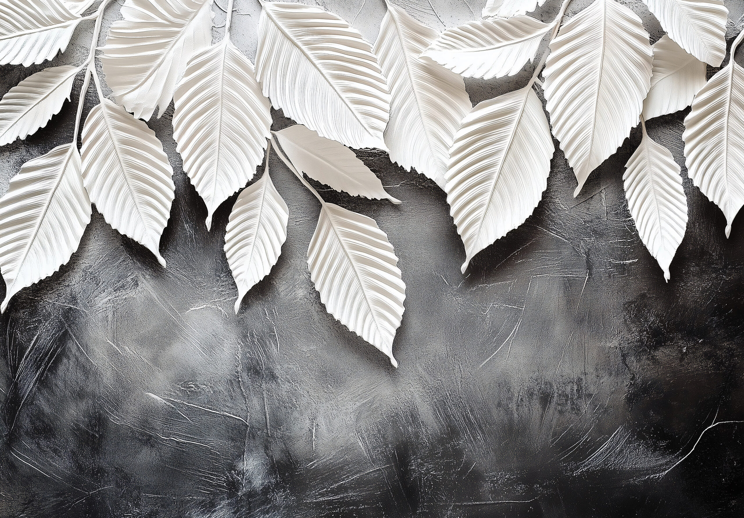 Fehér leveles modern fotótapéta időtlen szépséget sugároz, melynek 3d hatása modern hangulatot teremt. Tökéletes választás hálószobába vagy nappaliba, ha egyedi külsőt akarsz teremteni otthonodba.
