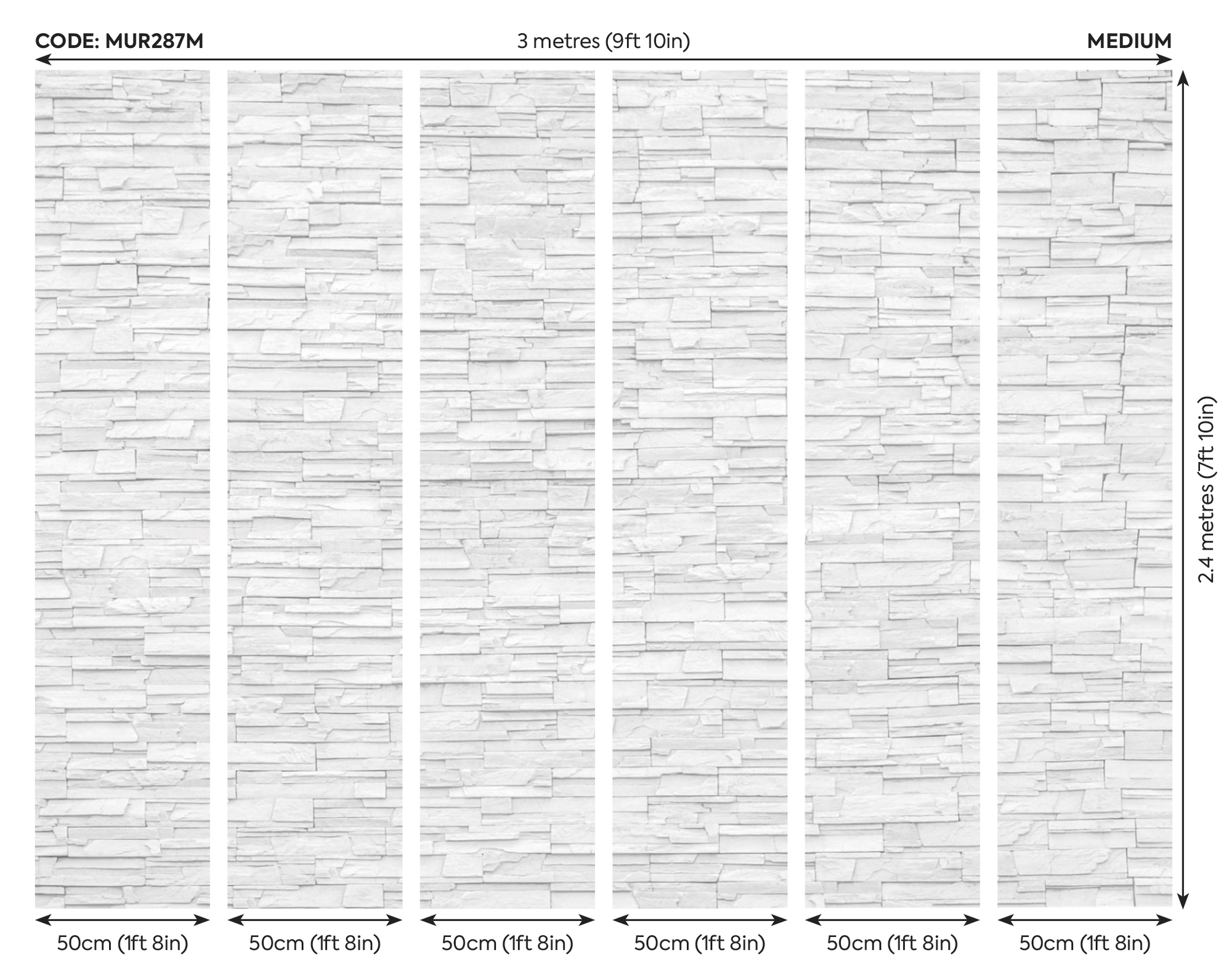 ✔ M – 300 cm széles x 240 cm magas (6 db 50 cm-es csíkból épül fel)