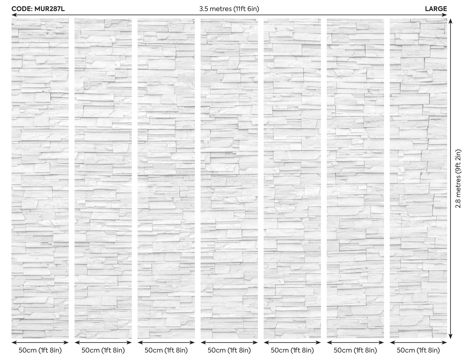 ✔ L – 350 cm széles x 280 cm magas (7 db 50 cm -es csíkból épül fel)