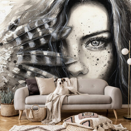 A fekete – arany mandala mintás fotótapéta keleties hangulatával harmonikus látványt teremt az enteriőrben.