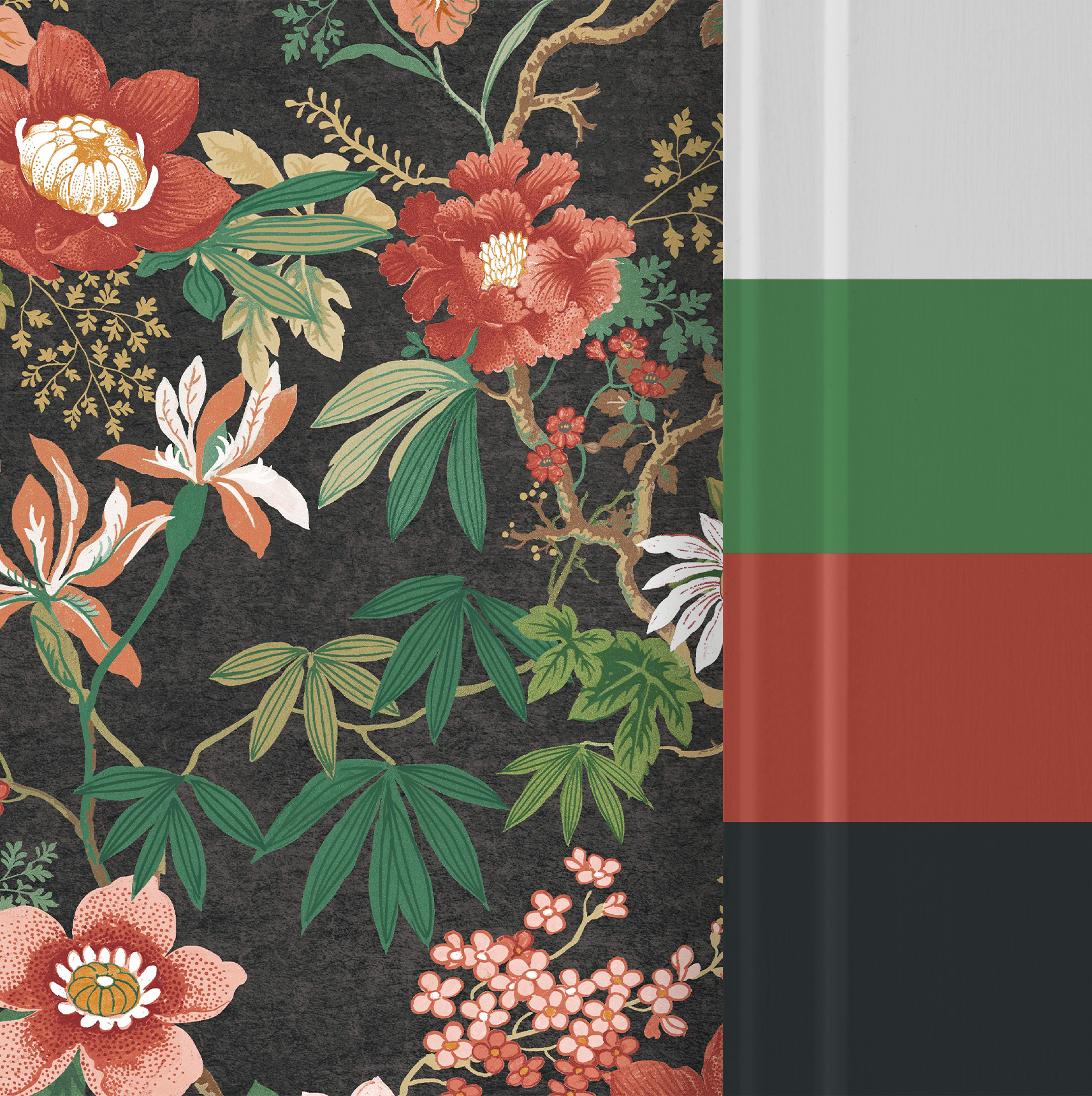 Fekete chinoiserie fotótapéta, melynek harmonikus szépsége megnyugtató atmoszférát teremt az enteriőrben. Az orientális stílust hordozó minta nagy méretű virágaival a modern és klasszikus formák tökéletes kompozíciója.
