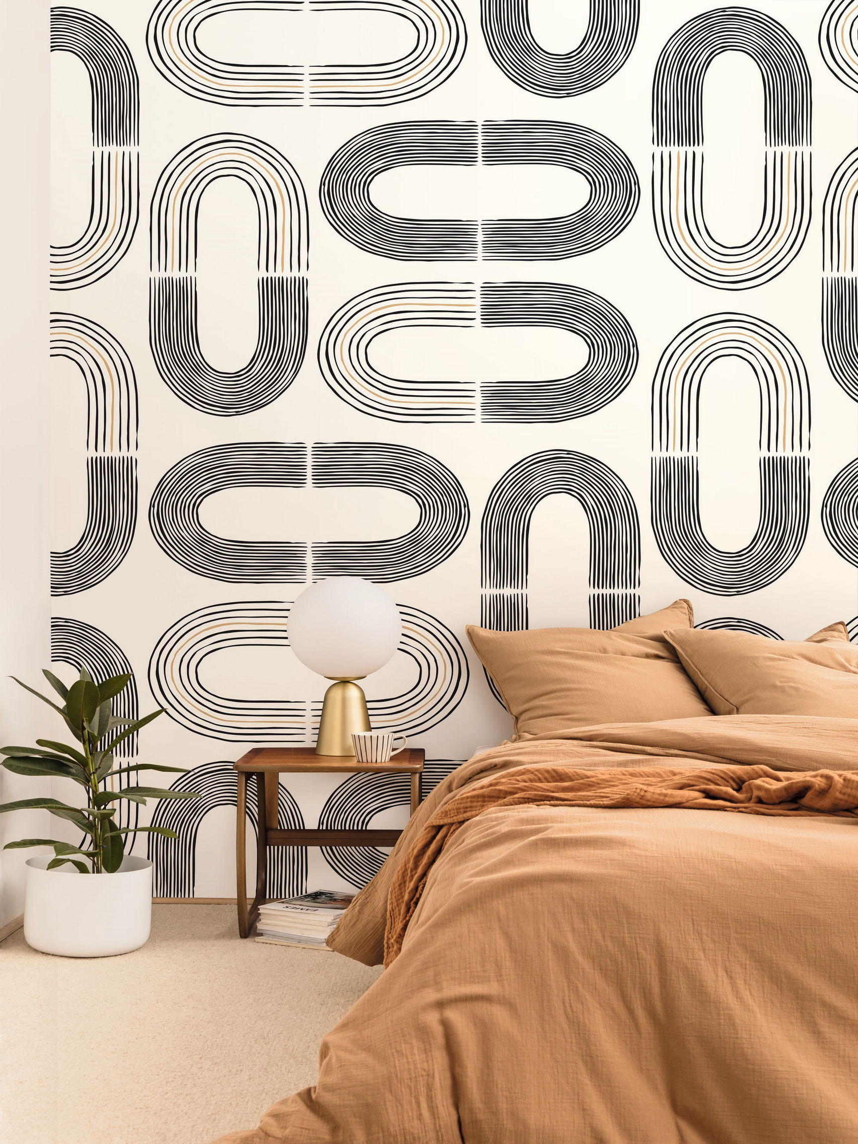 Igazi WOW hatást érhetünk el az enteriőrben a tapétának köszönhetően, melynek modern fekete-fehér árnyalatát aranyos betétek teszik ellenállhatatlanná.