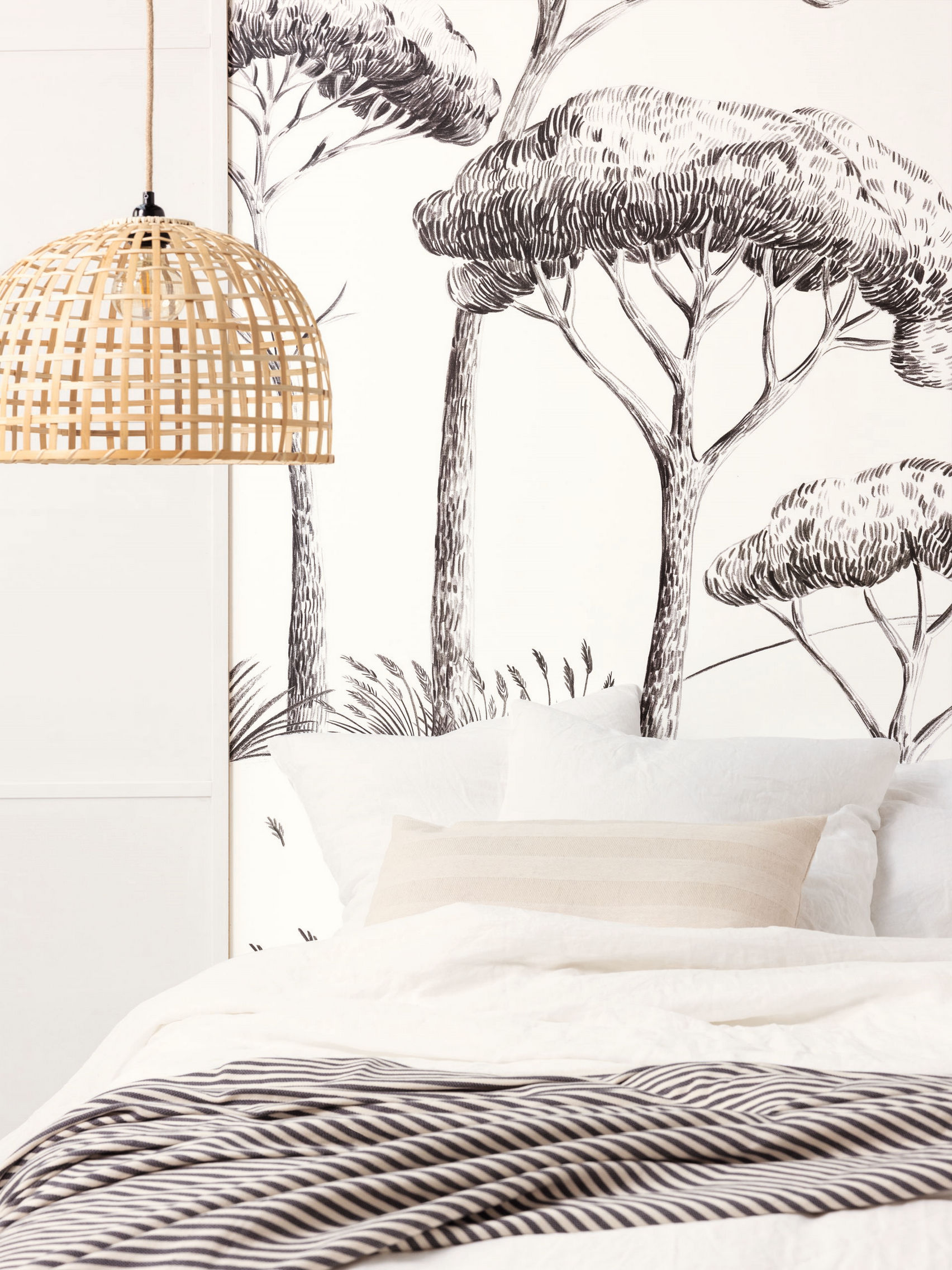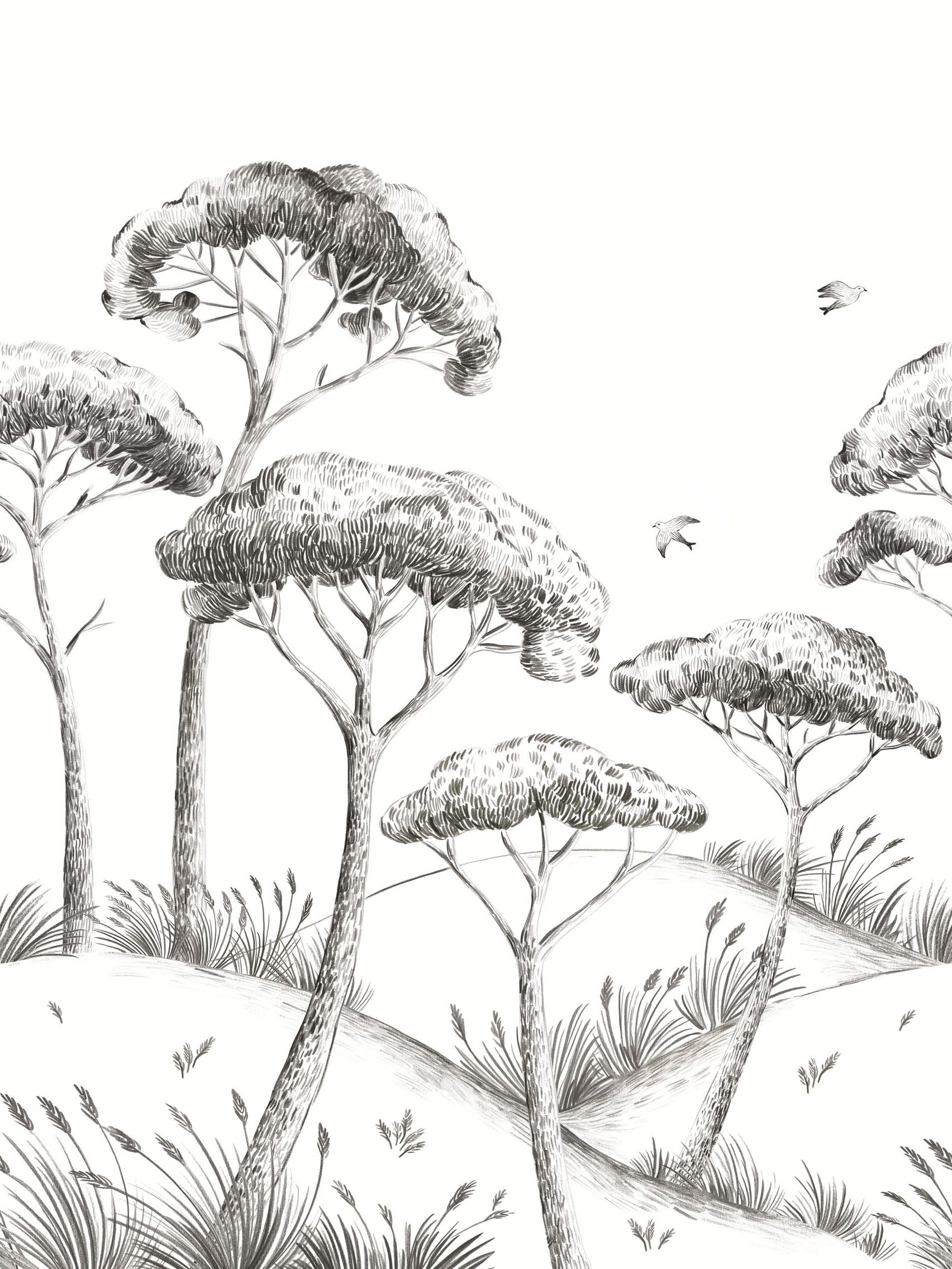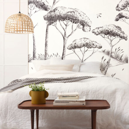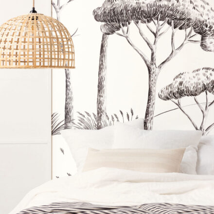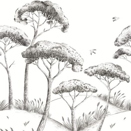 Fenséges és kecses olasz fenyők fák dekorálják a fotótapétát, mellyel igazi mediterrán hangulatot teremthetünk otthonunkban. A fekete-fehér monokróm színkombinációnak köszönhetően a tapéta modern hangulatot áraszt.