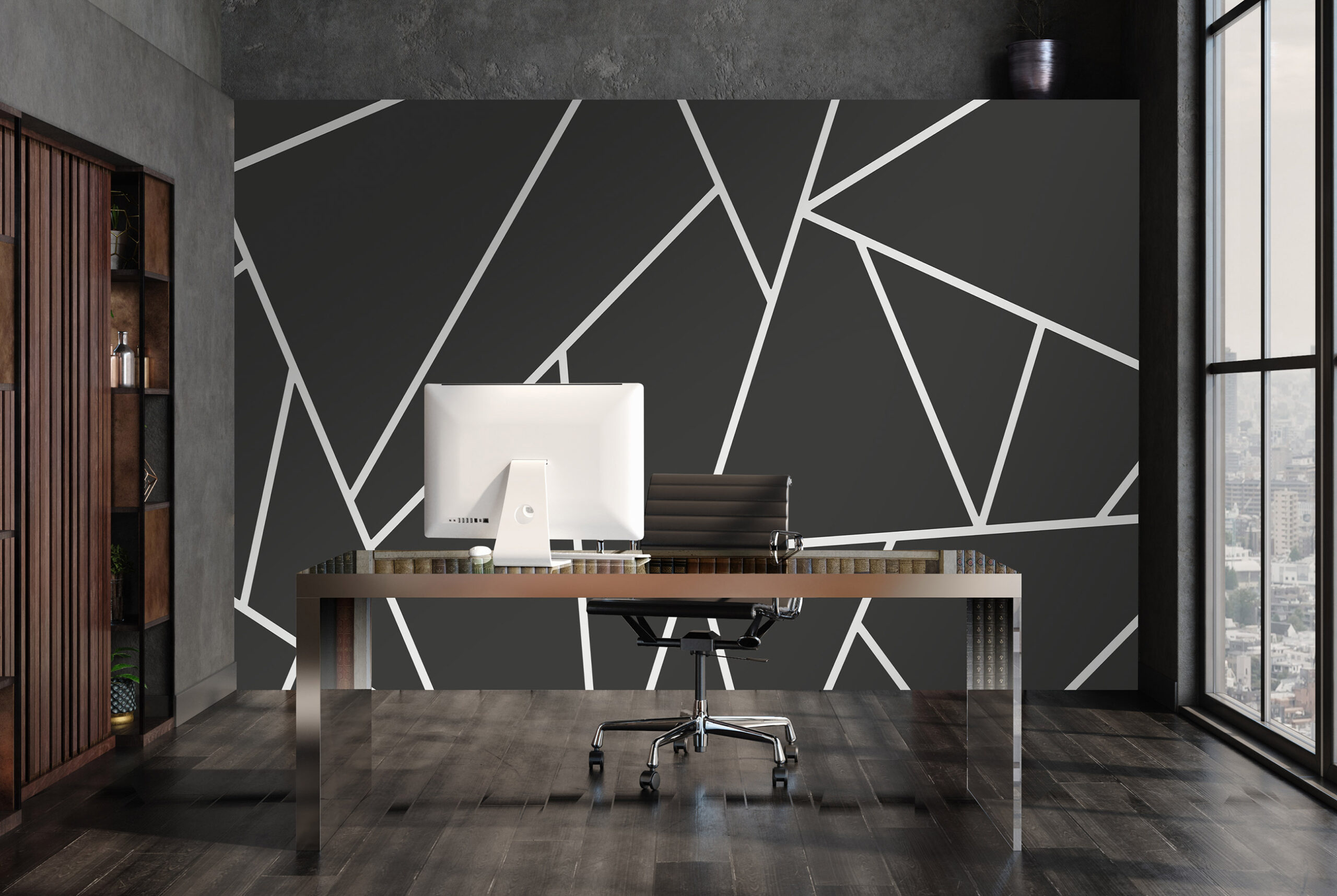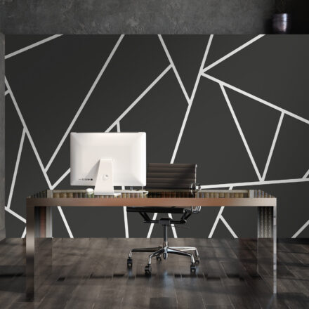 Fekete-fehér háromszög mintás fotótapéta, melynek modern grafikája látványos dekorációt teremt az enteriőrben.