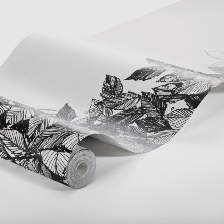 Fekete – fehér mogyorófa mintás fotótapéta, melynek alapja a lenszövetet imitálja mintázatával. A mogyorófa mintát eredetileg textilre tervezték és lenszövetre nyomtatták, ennek hatását kívánja tükrözni a tapéta alapstruktúrája, mely a textilszövetet imitálja.