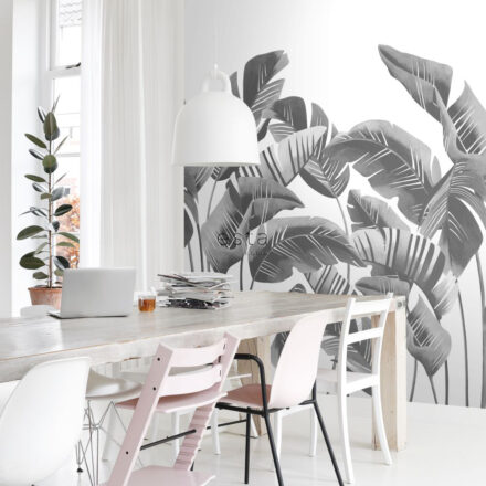 Teremts egzotikus légkört a orrhonodban a nagyméretű banánlevelekkel, melyek a fali posztert dekorálják. Az izgalmas levélminta modern formában jelenik meg a poszteren.