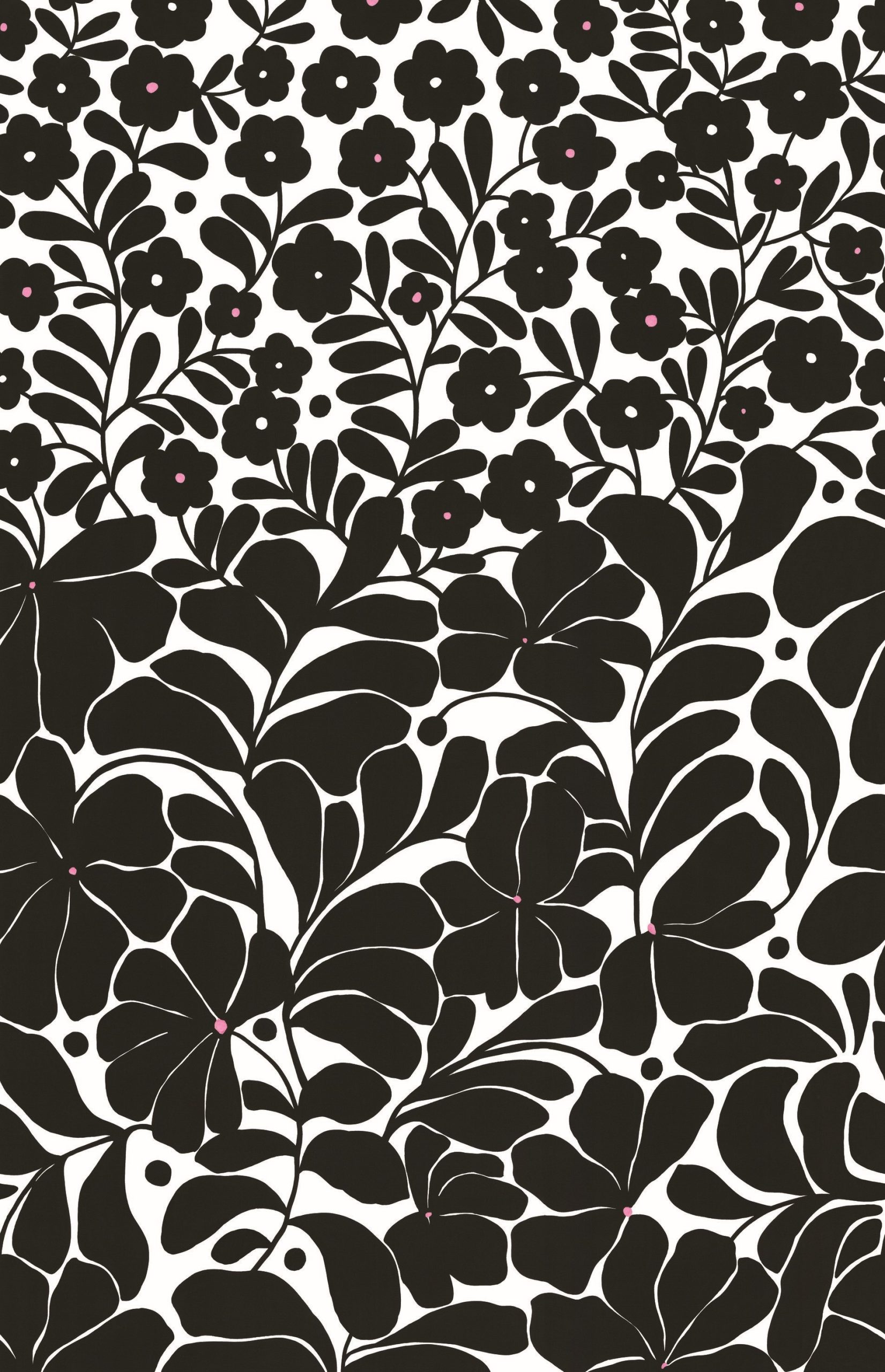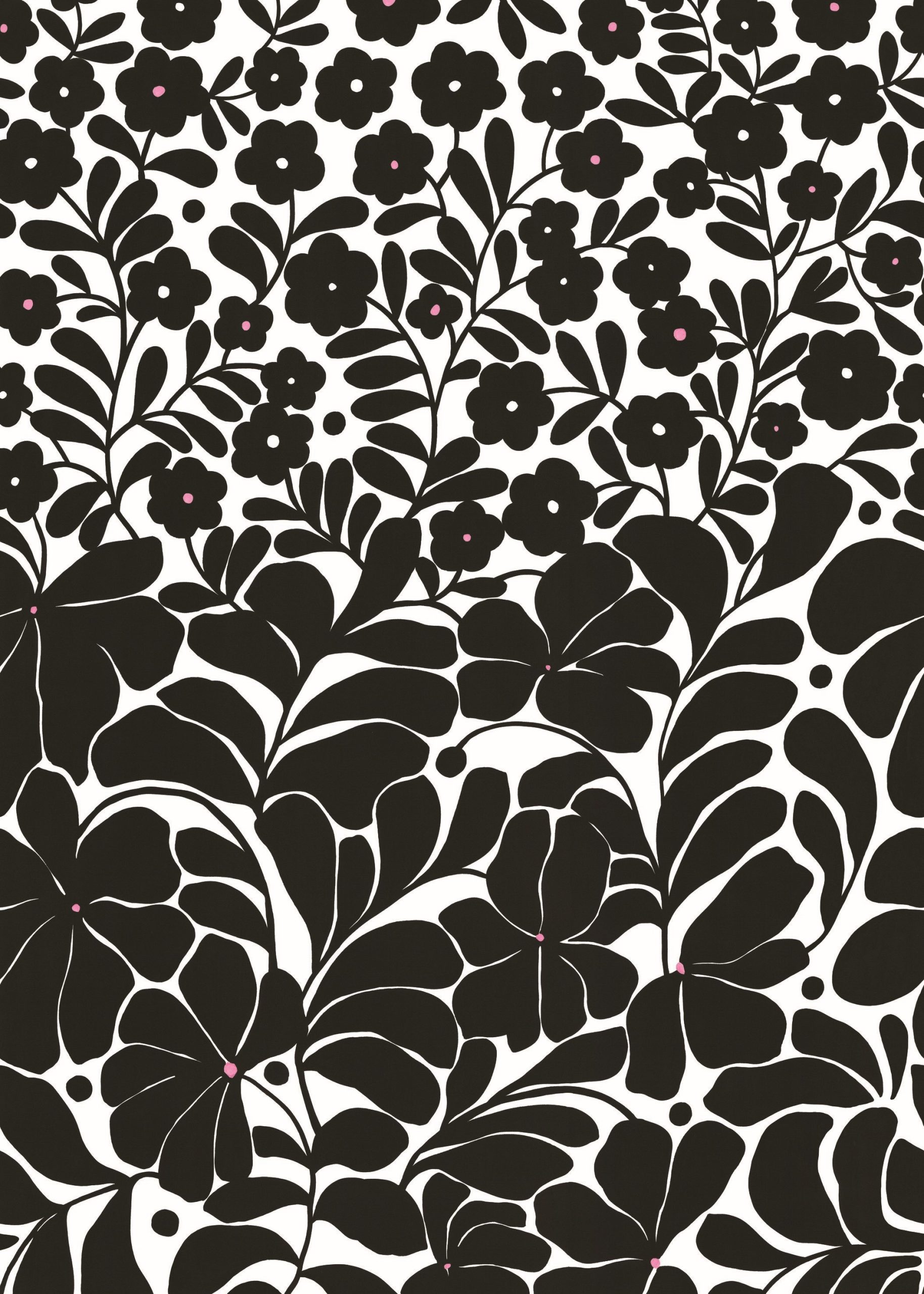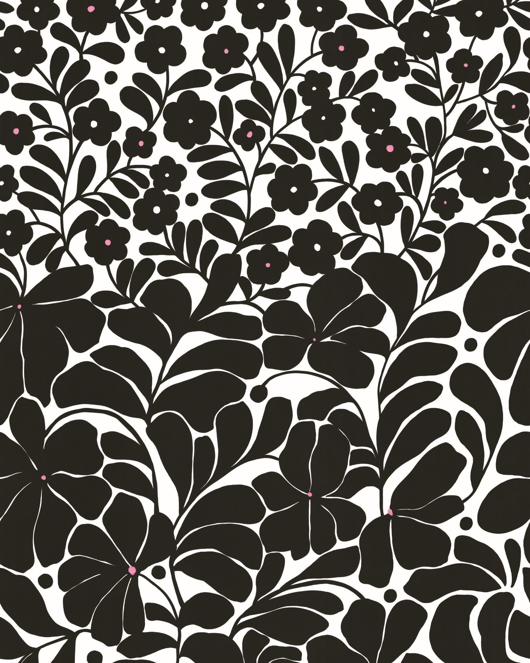 Fekete-fehér skandi stílusú virágos fotótapéta, melynek felfelé törő mintája igazi grafikai különlegesség.
