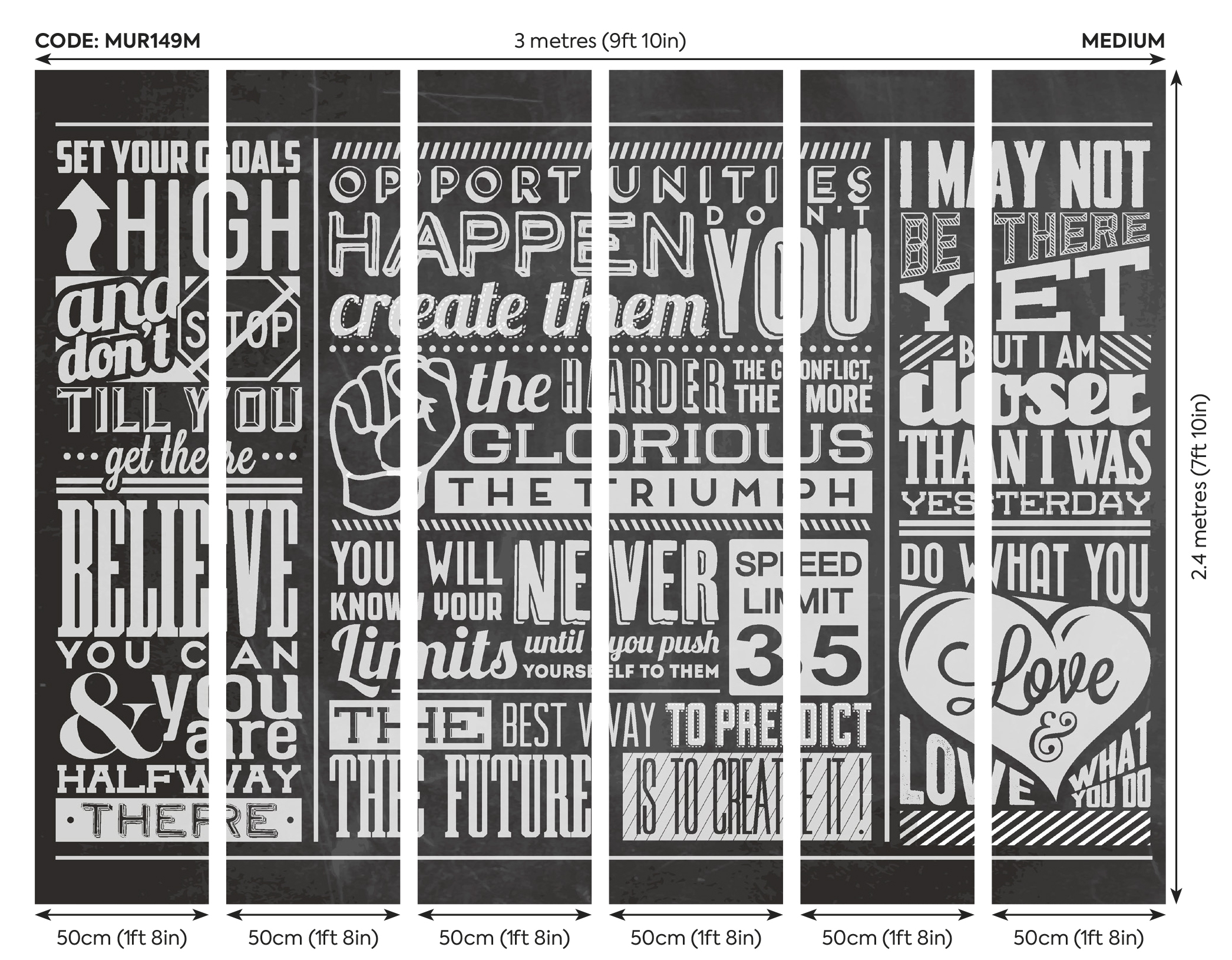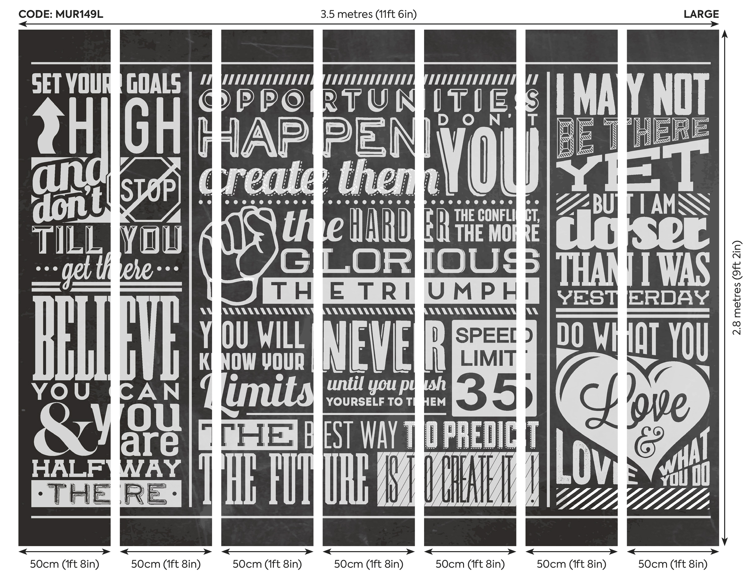 Hangulatos fotótapéta, melynek pozitív üzenetei kellemes, inspiráló atmoszférát teremtenek.
