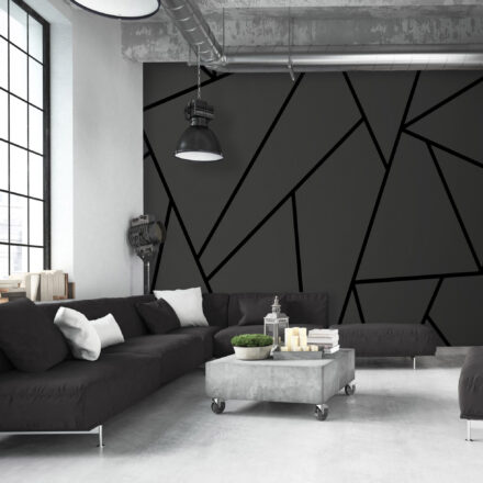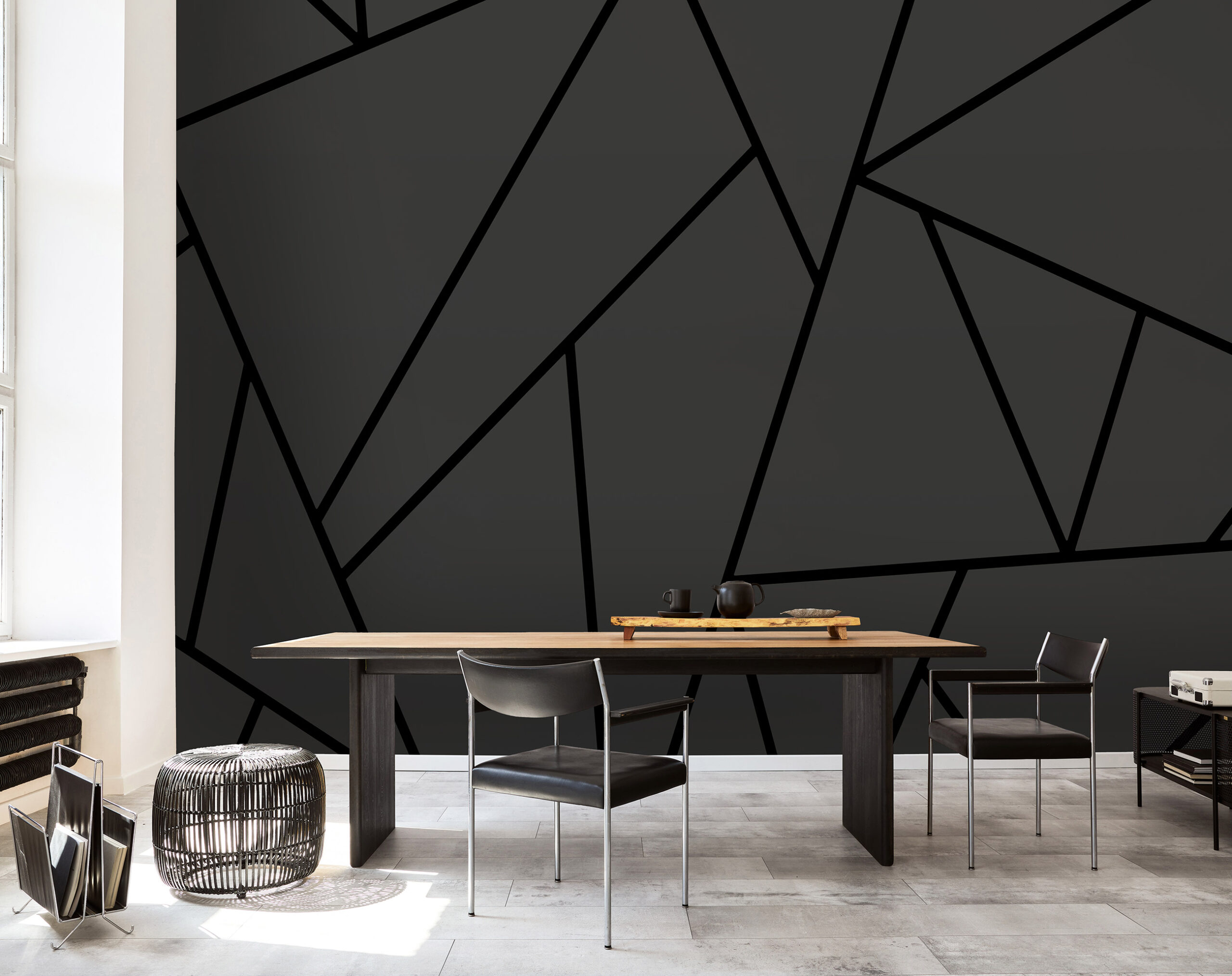 Fekete háromszög mintás fotótapéta, melynek modern grafikája látványos dekorációt teremt az enteriőrben.
