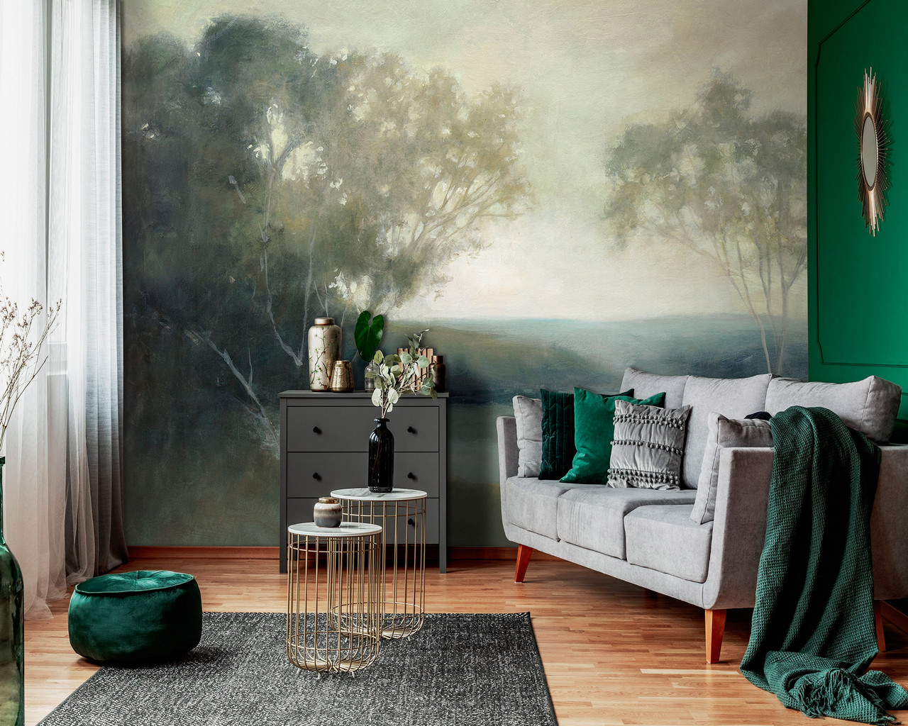 Akvarell festmény hatását keltő fotótapéta, melynek erdei tájképe megnyugtató, harmonikus légkört teremt.