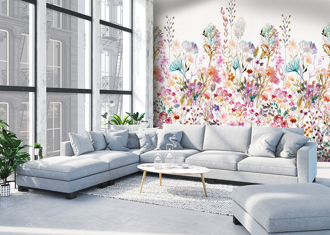 Színes virágos fotótapéta, mely a tavaszi mező színpompáját hozza el otthonunkba. Fiatalos, vidám tapéta, mellyel garantált az örök tavasz.
