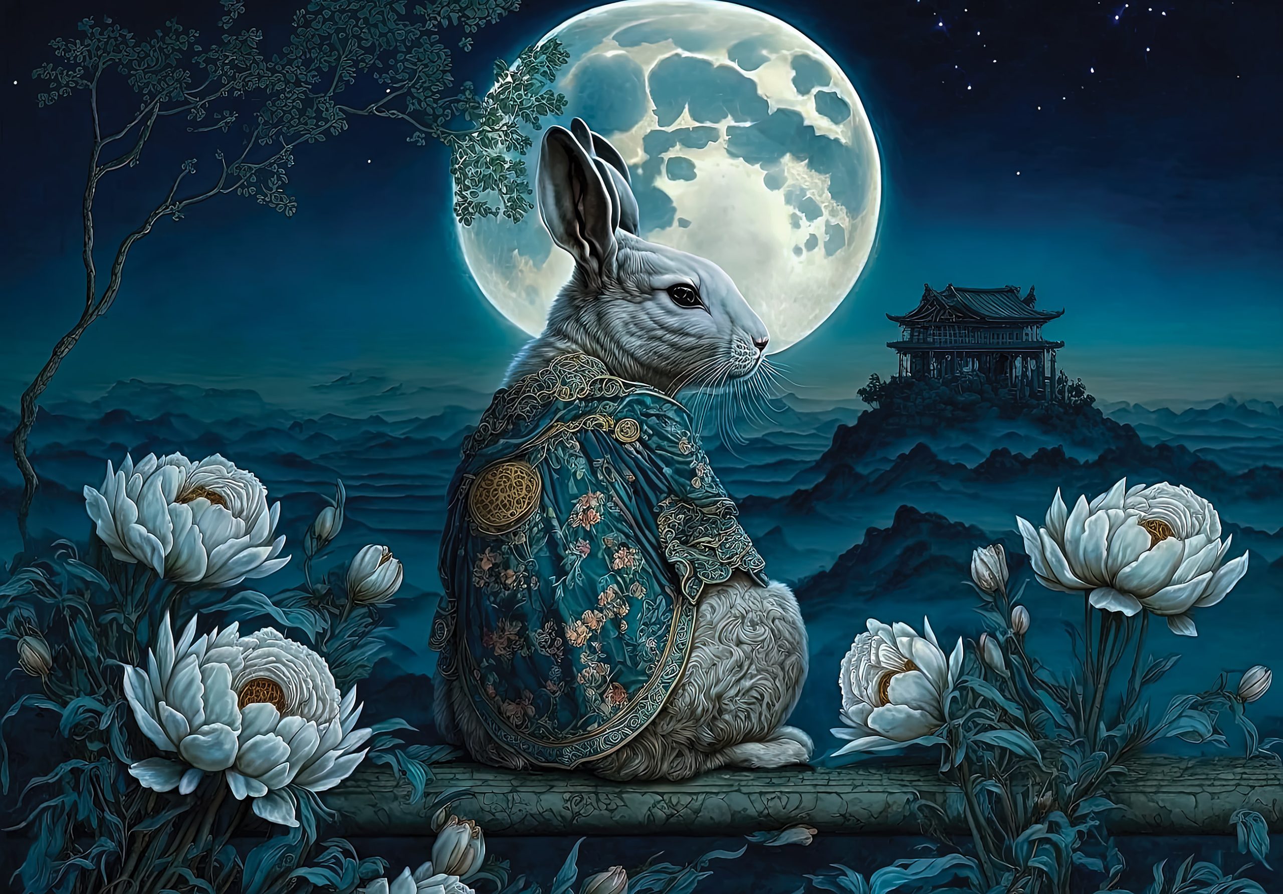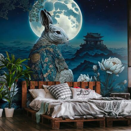 2023 a Nyúl Éve – ennek jegyében készült a fotótapéta, melynek stílusa Távol-Keleti atmoszférát teremt az enteriőrben.