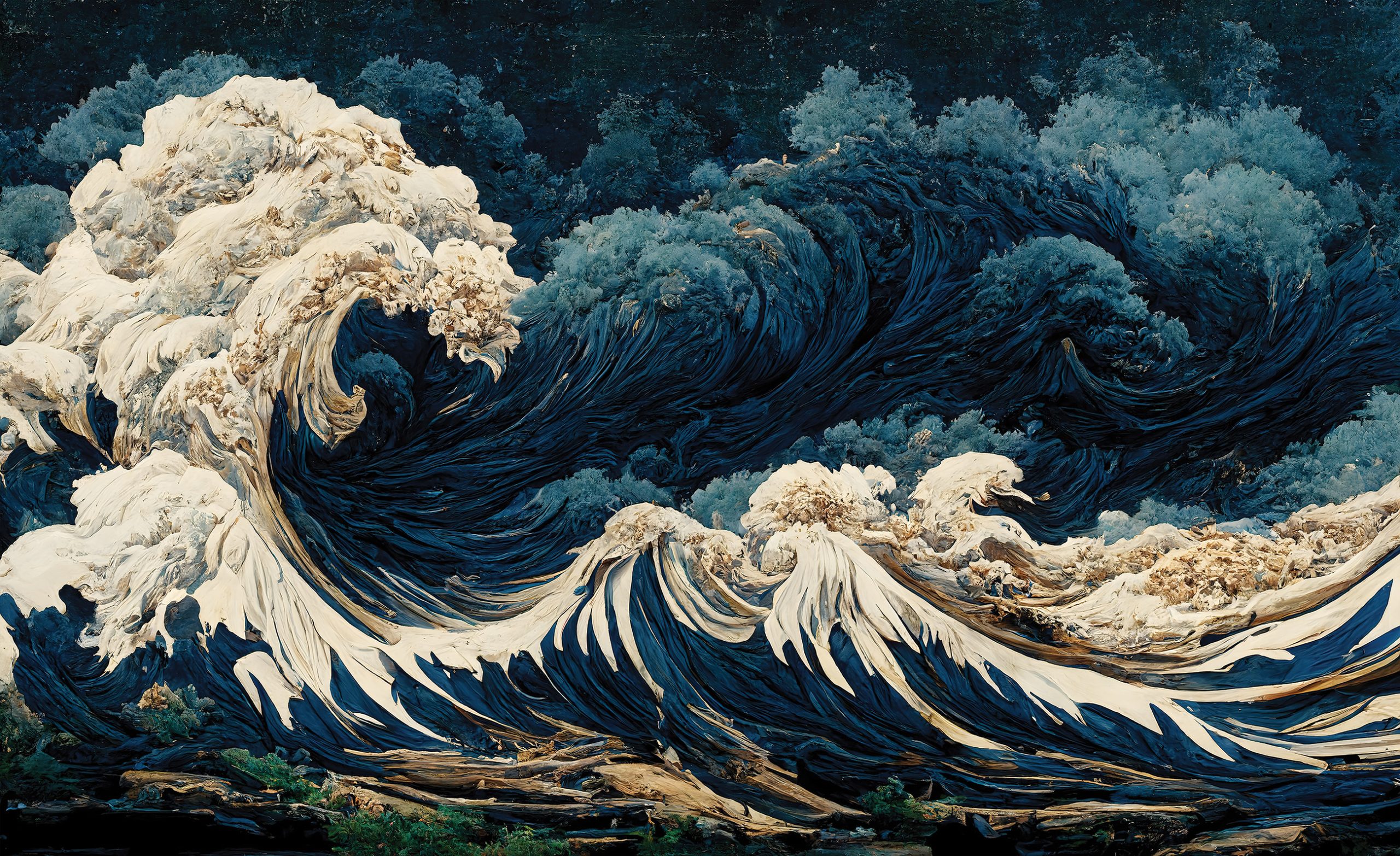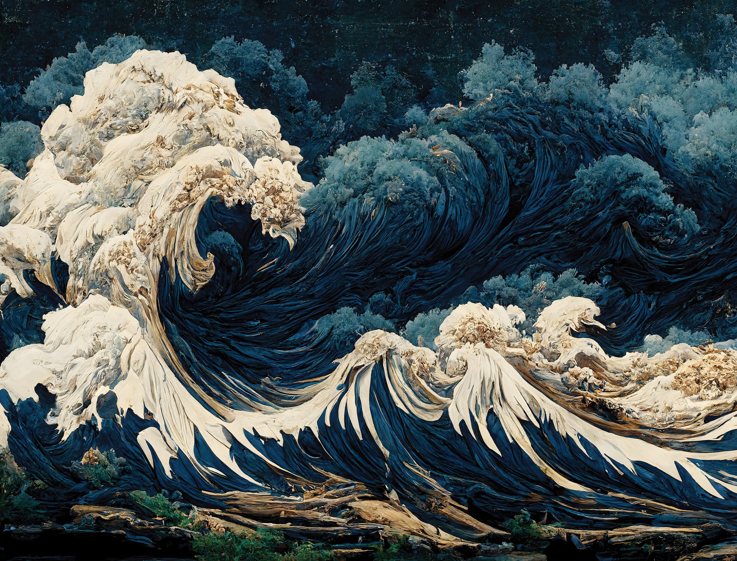 Lenyűgöző, fenséges látványt nyújt a tenger viharos képe, melyen a felkorbácsolt hullámok magasra tornyosulnak és mindent magukkal ragadnak. Drámai kép, mely egyedi enteriőrt teremt.