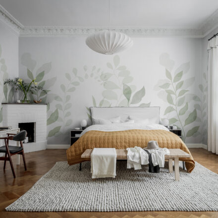 Letisztult színvilága és finoman megrajzolt formája teszi ellenállhatatlanná a nagyméretű levélmintát, melynek kecses íve átszövik a falat. Az akvarell festményt imitáló fotótapéta látványa nyugodt harmóniát és szépséget hoz otthonunkba.
