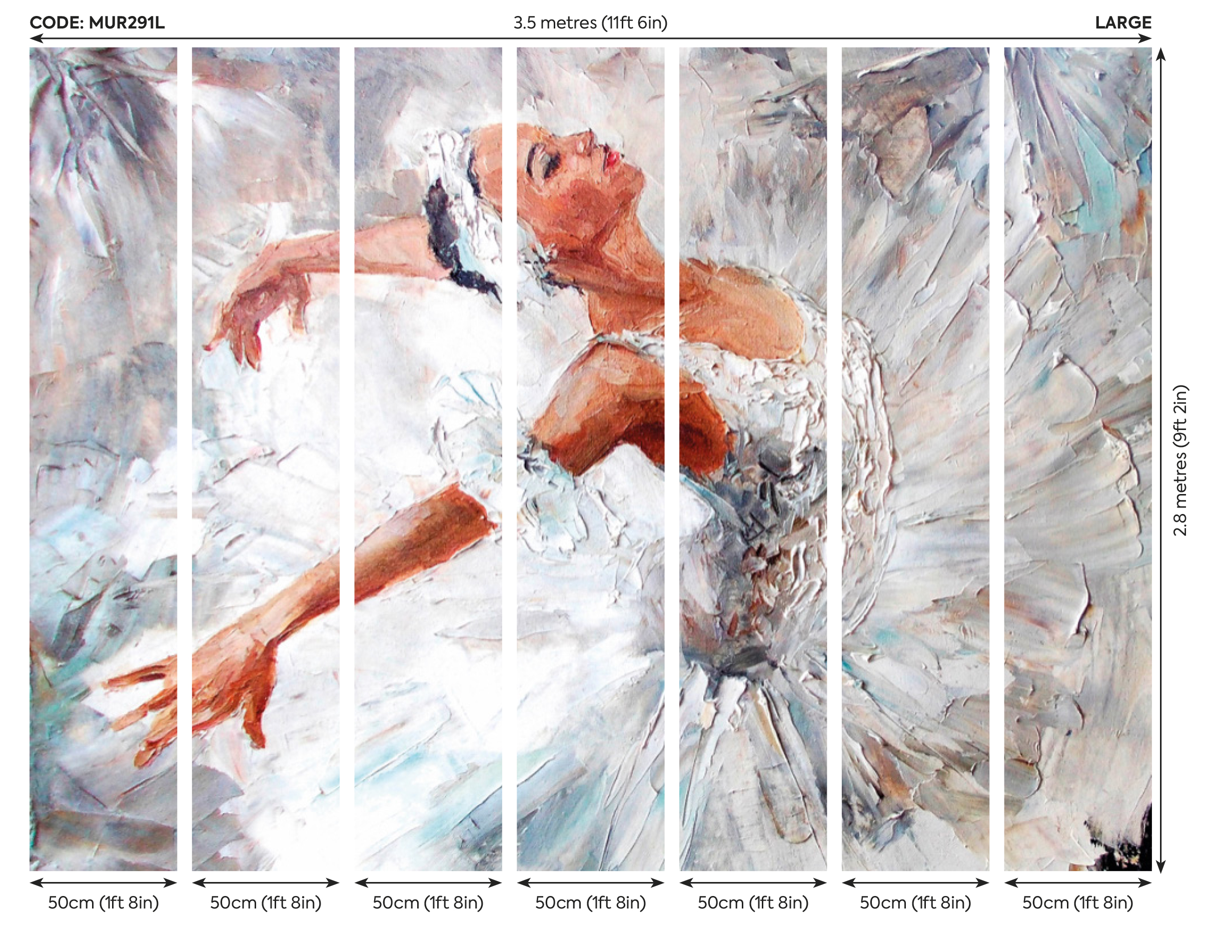 ✔ L – 350 cm széles x 280 cm magas (7 db 50 cm -es csíkból épül fel)