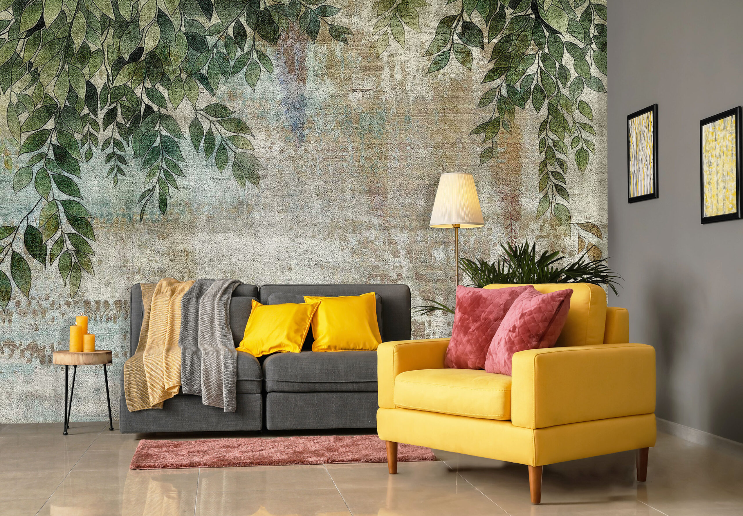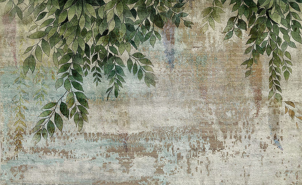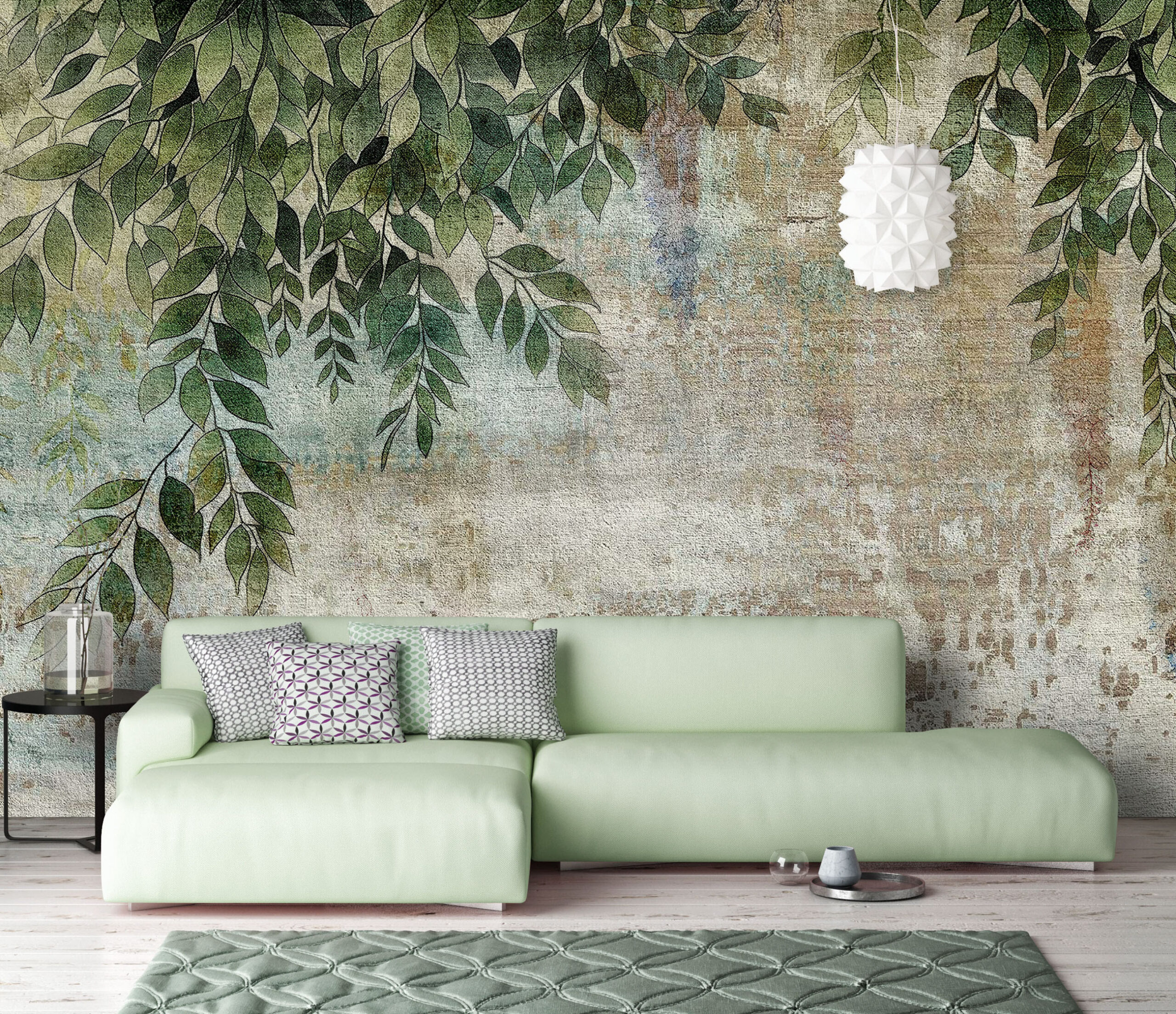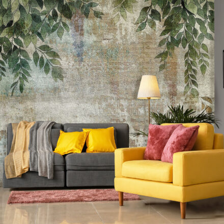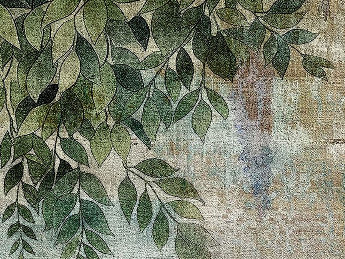 Fotótapéta hangulatos levélmintával, melynek kontúros levélmintáját elmosódott elemek tarkítják, mely vintage atmoszférát kölcsönöz a képnek.