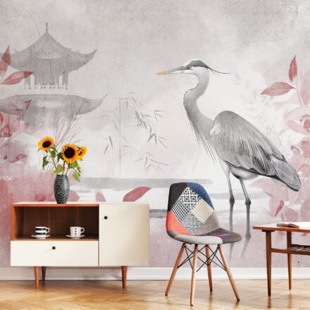 Fotótapéta japán pagodával és darumadárral, mely az orientális világ harmóniáját és nyugalmát sugározza az enteriőrben.