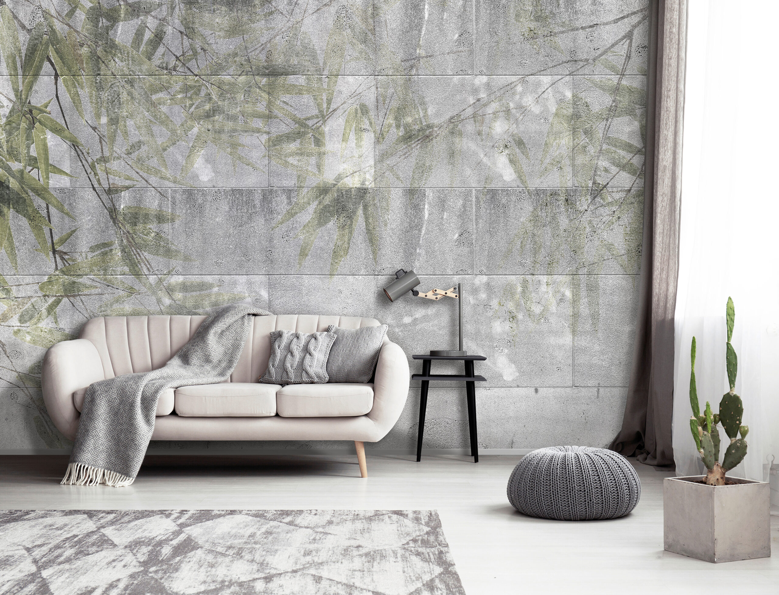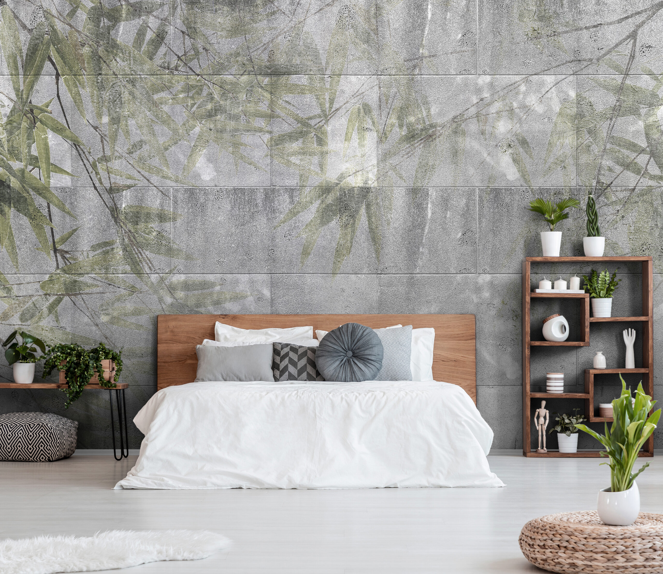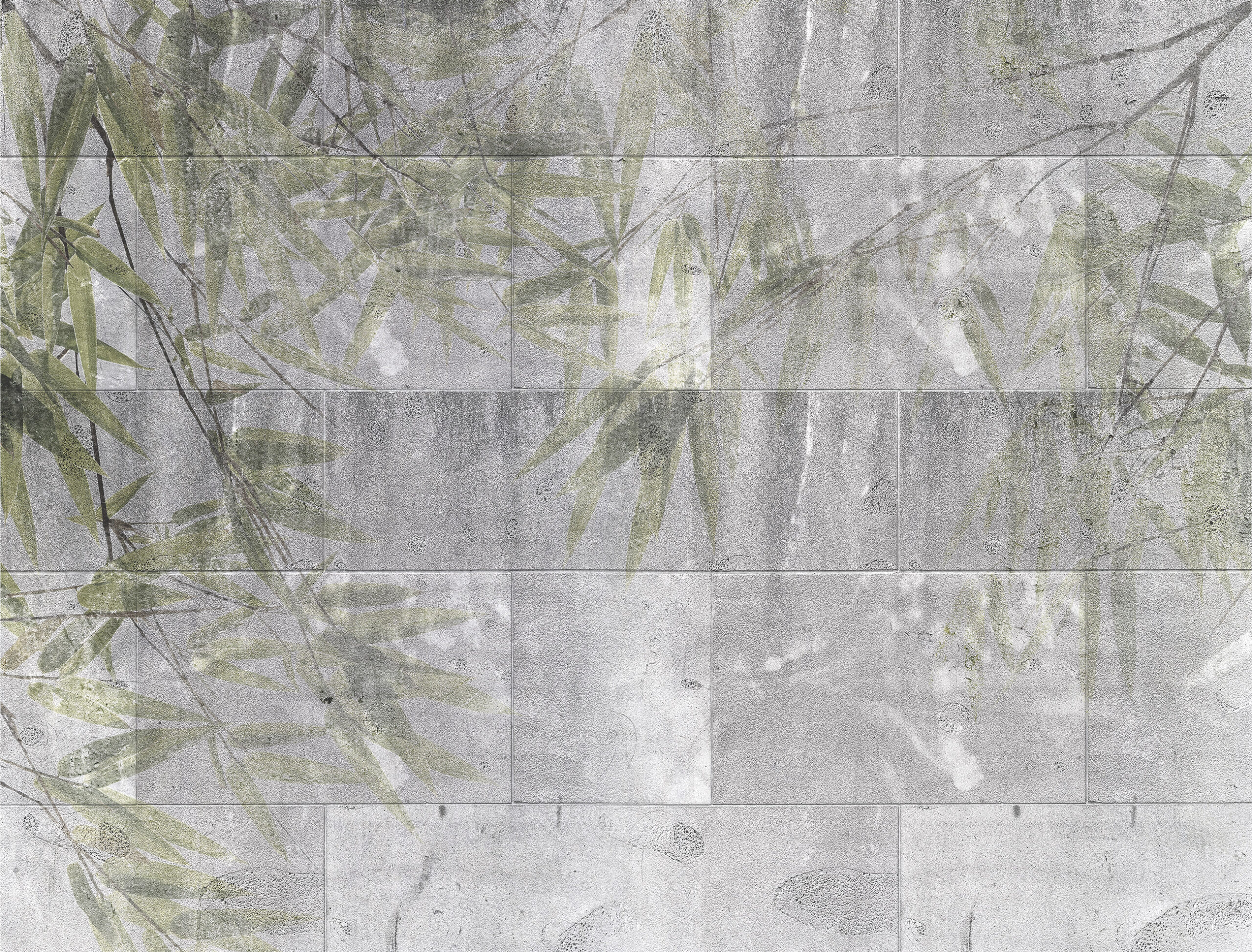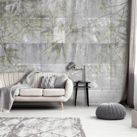 Fotótapéta kőfalon megjelenő levéllenyomattal, mely látványosan dekorálja az enteriőrt, miközben a természet energiát sugárzó elemet viszi be a térbe.