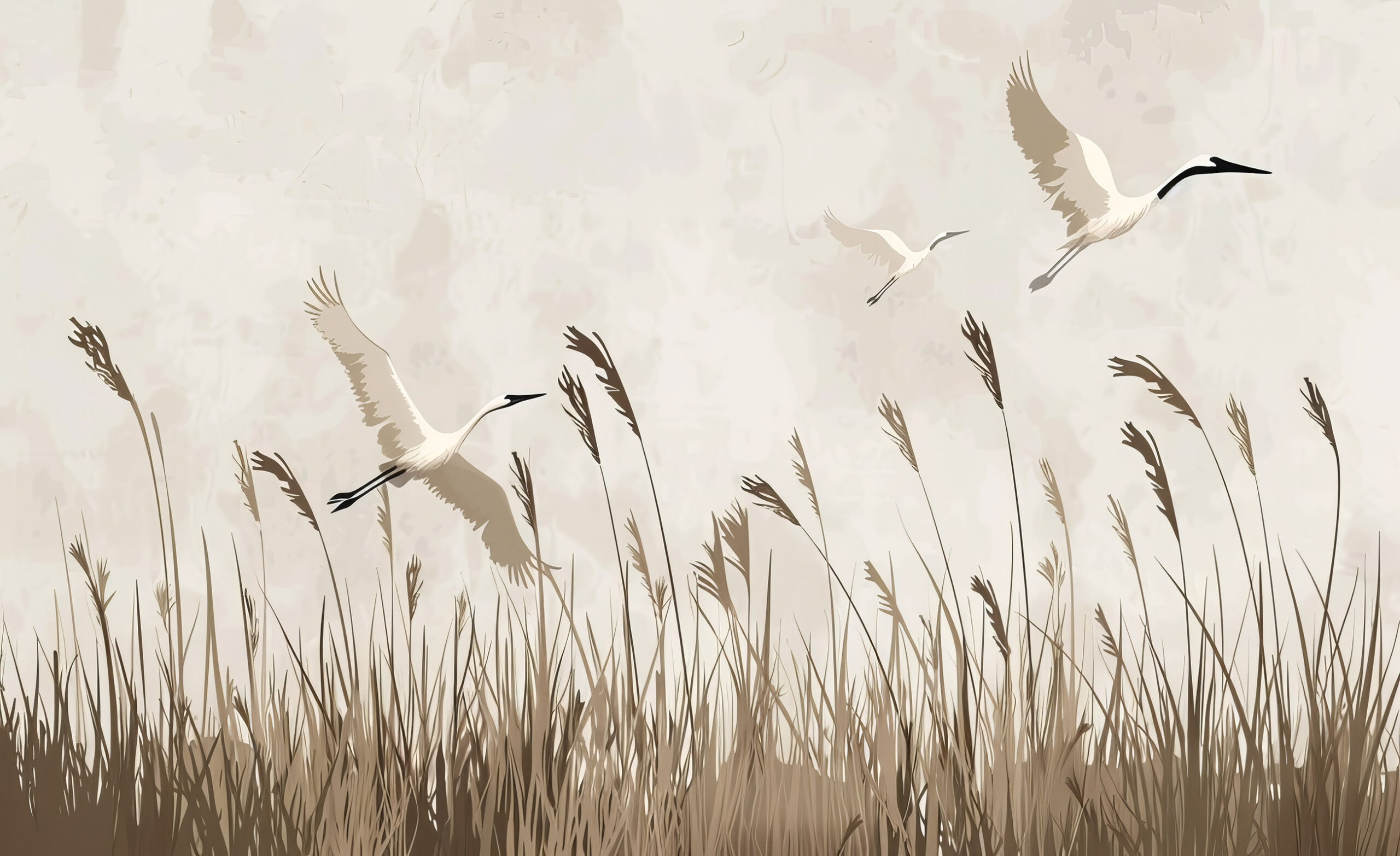 Fotótapéta nádas felett repülő madarakkal, mely letisztult, természetközeli élményt nyújt otthonodban.