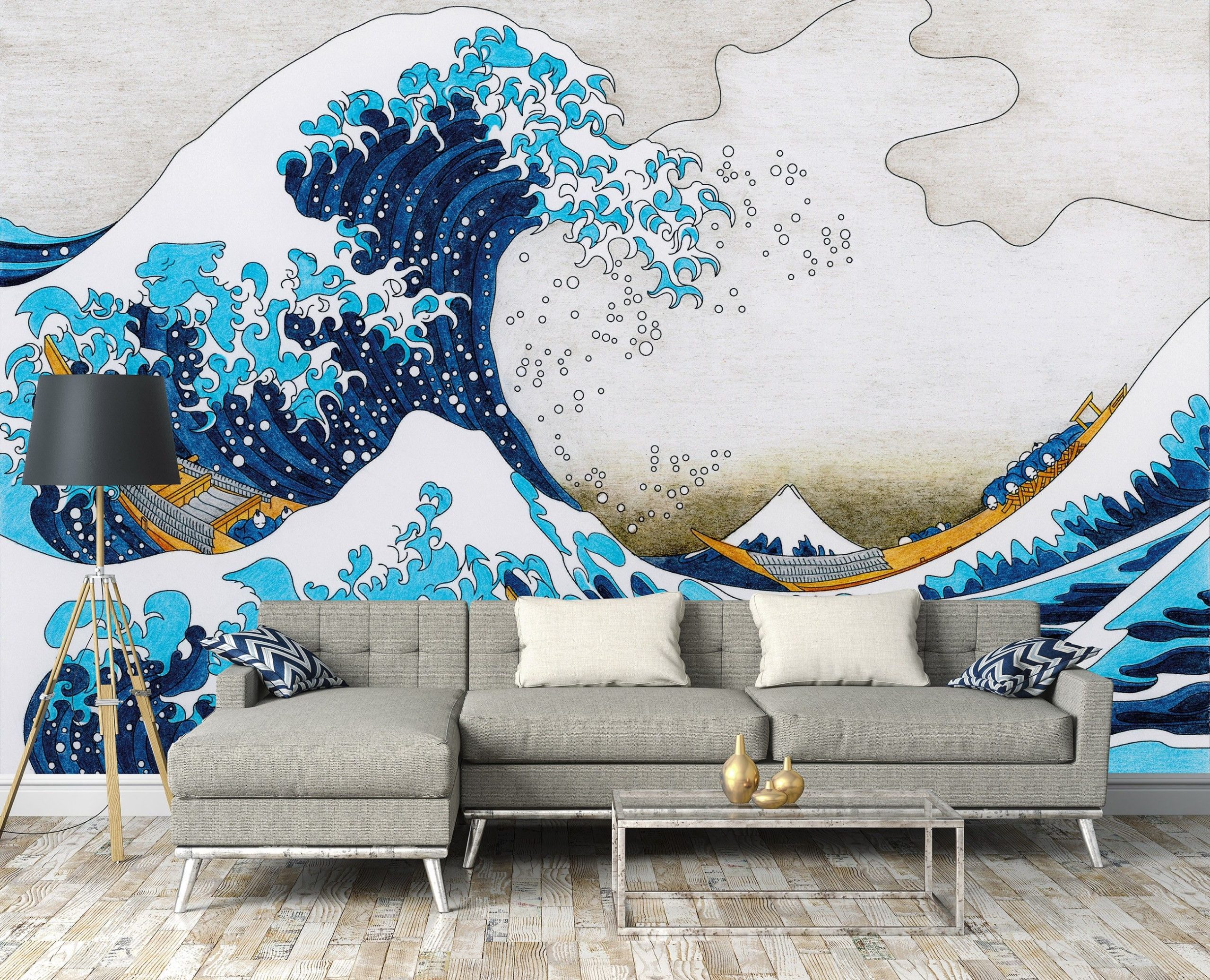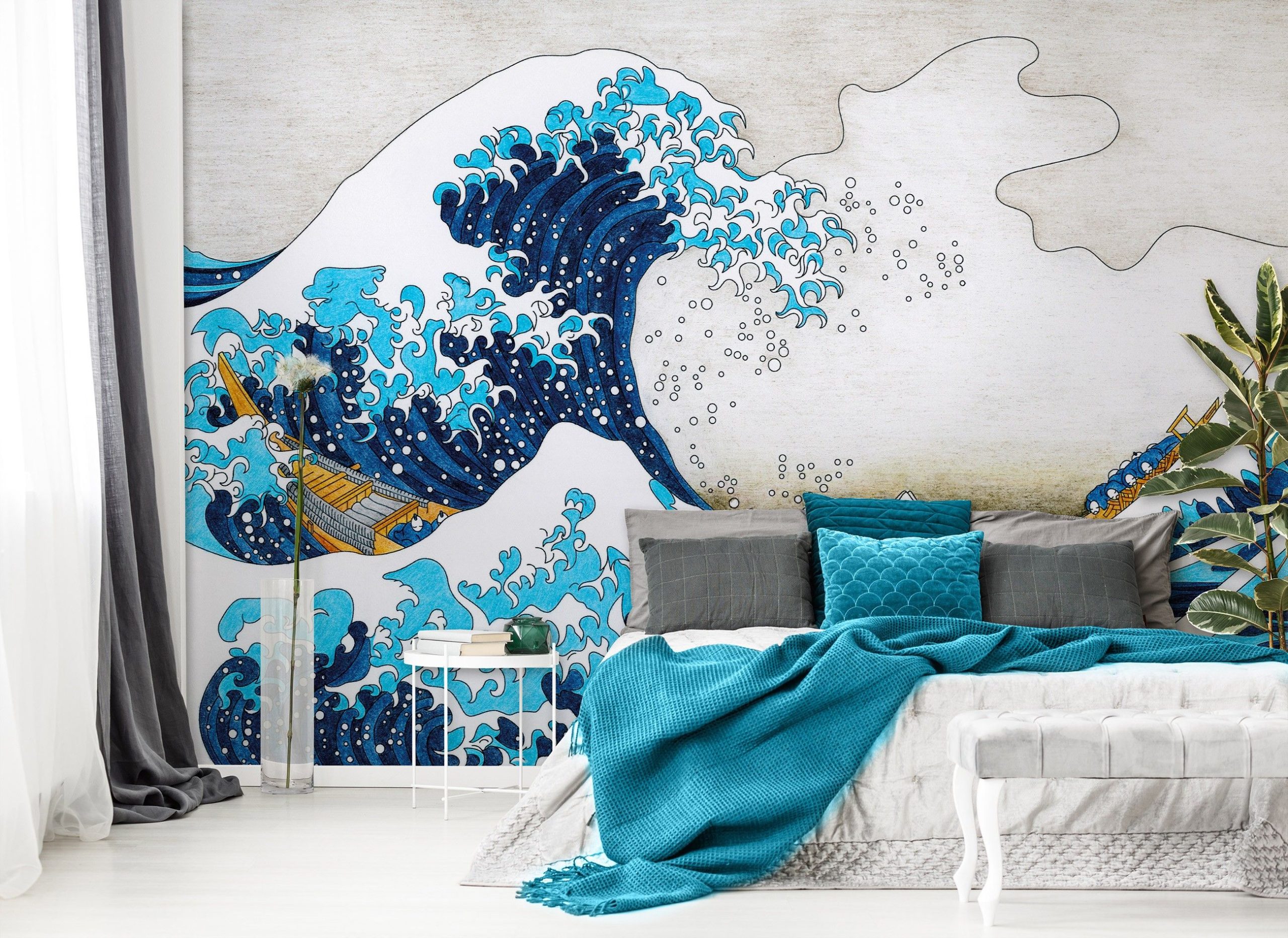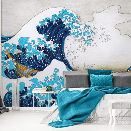 Fotótapéta orientális életképpel, melyen a kínai hajó a viharos tenger hullámaival küzd.