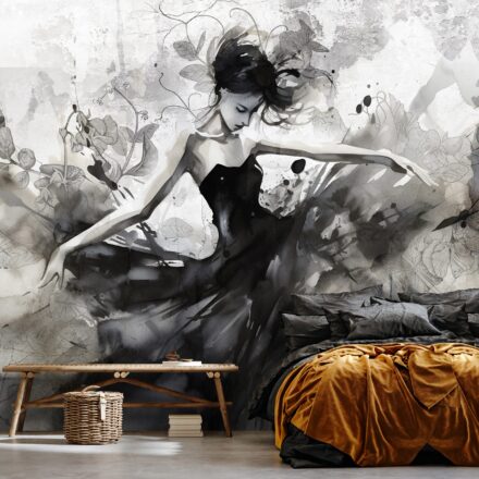 Egyediséget és igazi WOW élményt teremt az enteriőrben a nagy méretű fotótapéta, melyen táncoló leány akvarell formája látható.